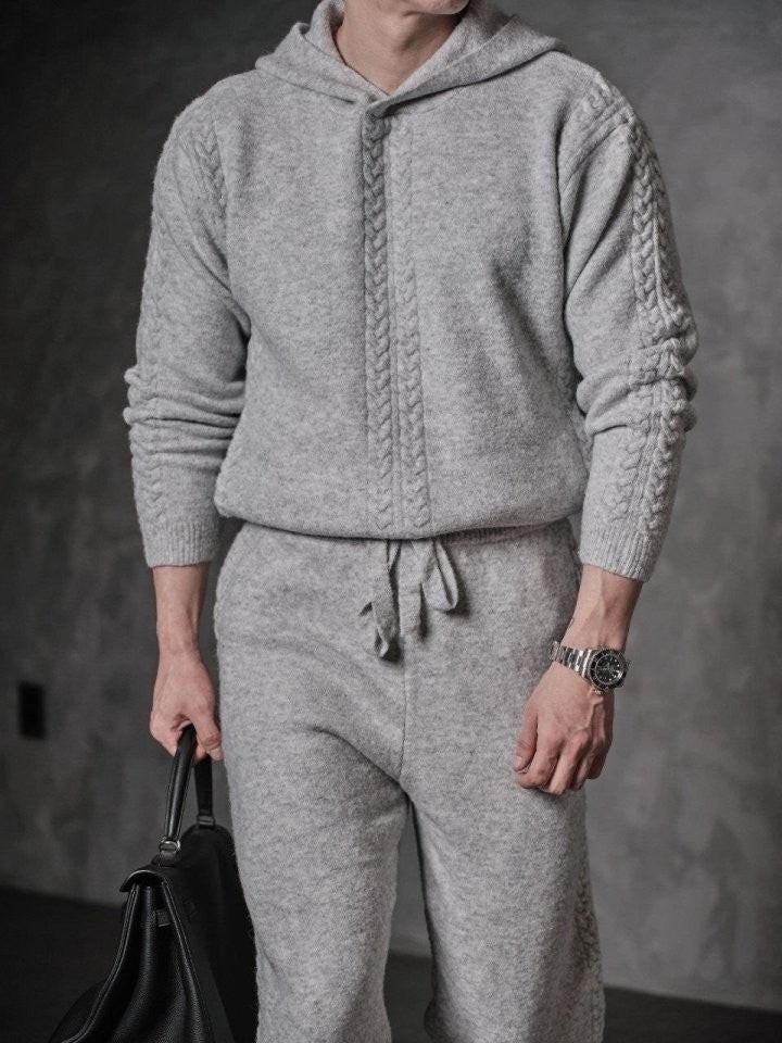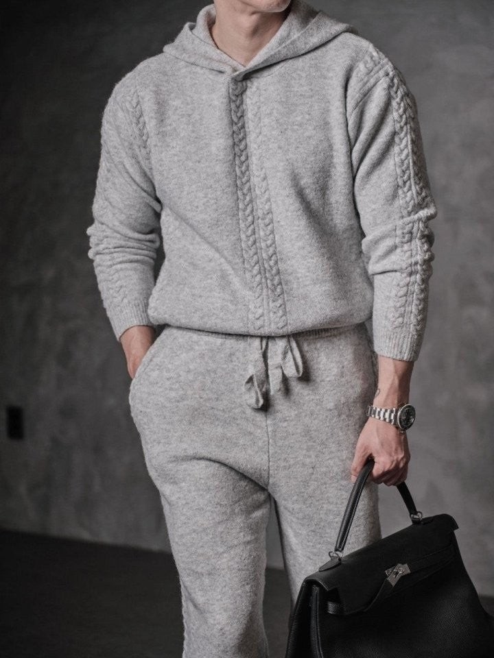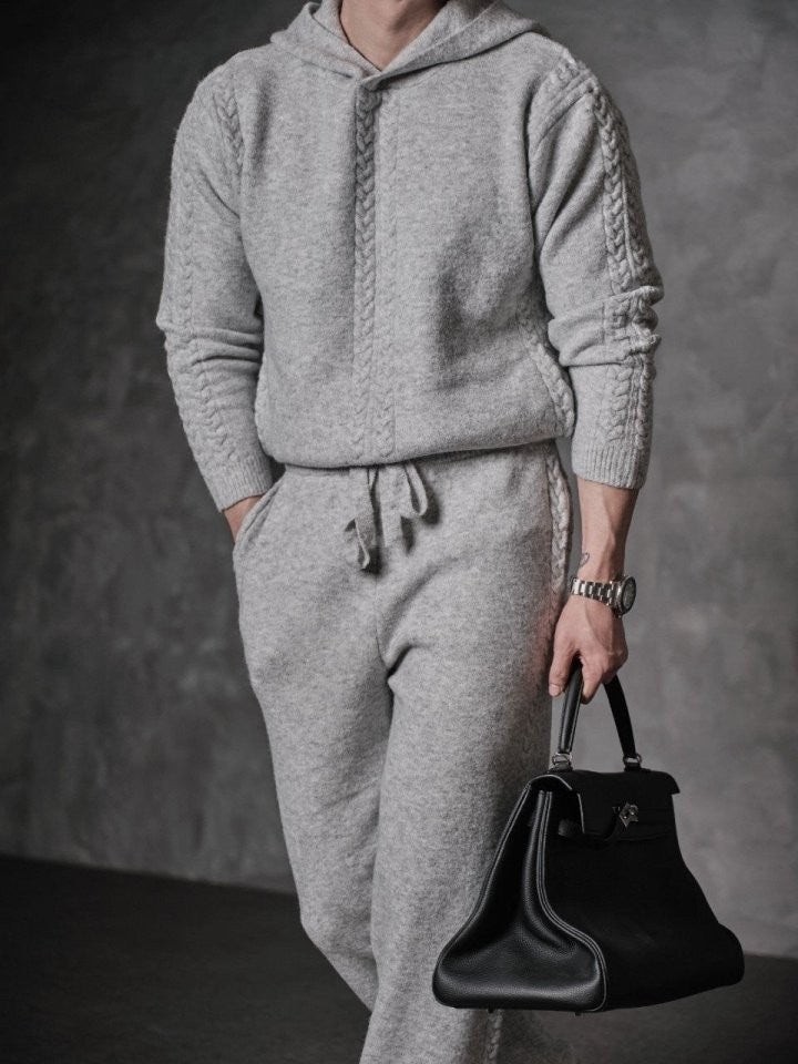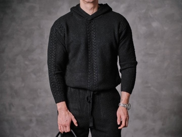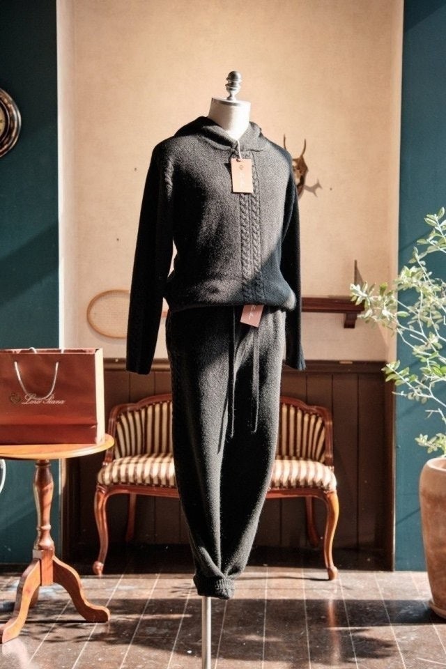 최고급 프리미엄 울85% 원단사용 케이블 조직 외간의 울 니트 셋업제품이며 상의에 주머니 장착 울 혼방 캐시미어 소재로부드러운 터치감과 뛰어난 보온성 립 조직의 포켓과 헴 디테일로 손이 자주가는 제품 입니다.