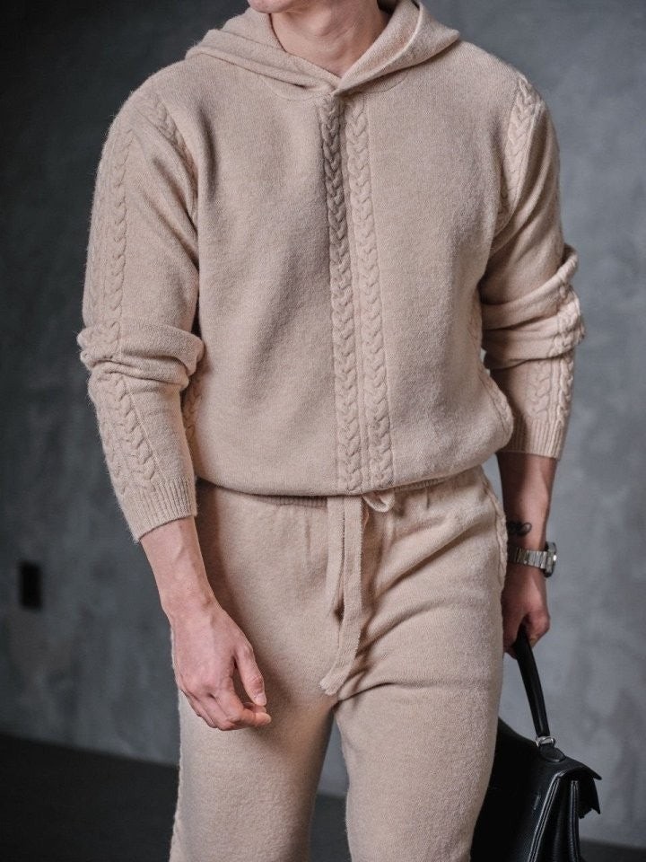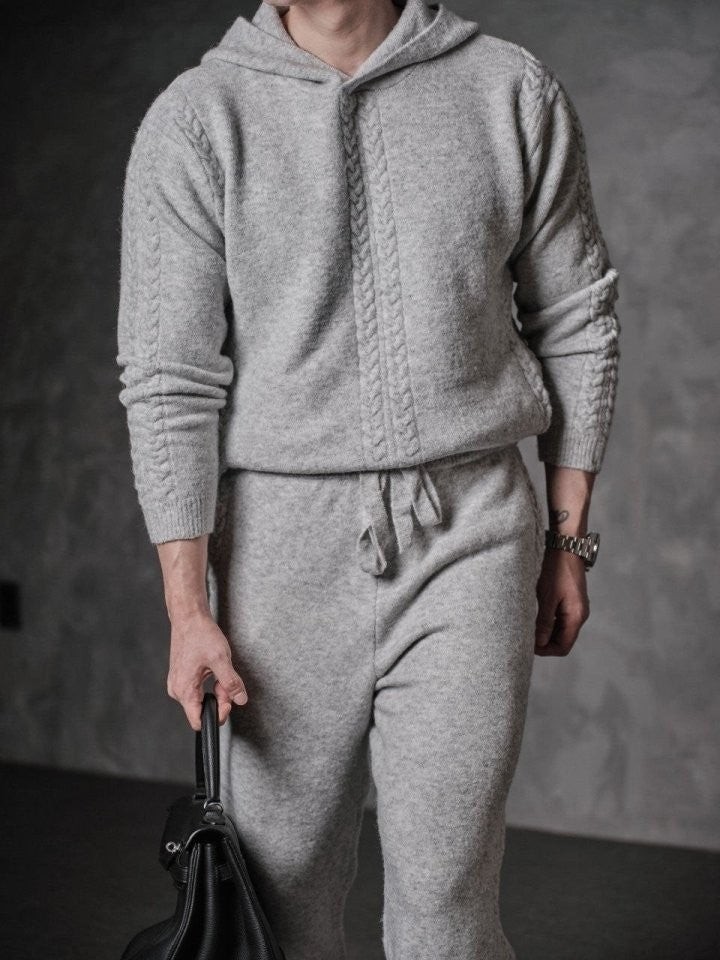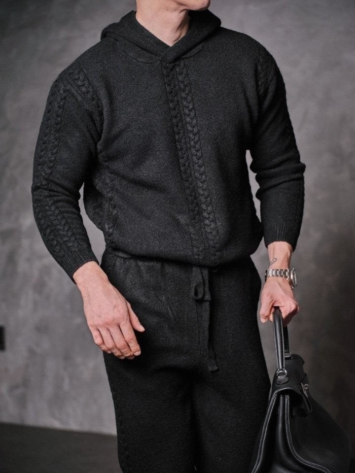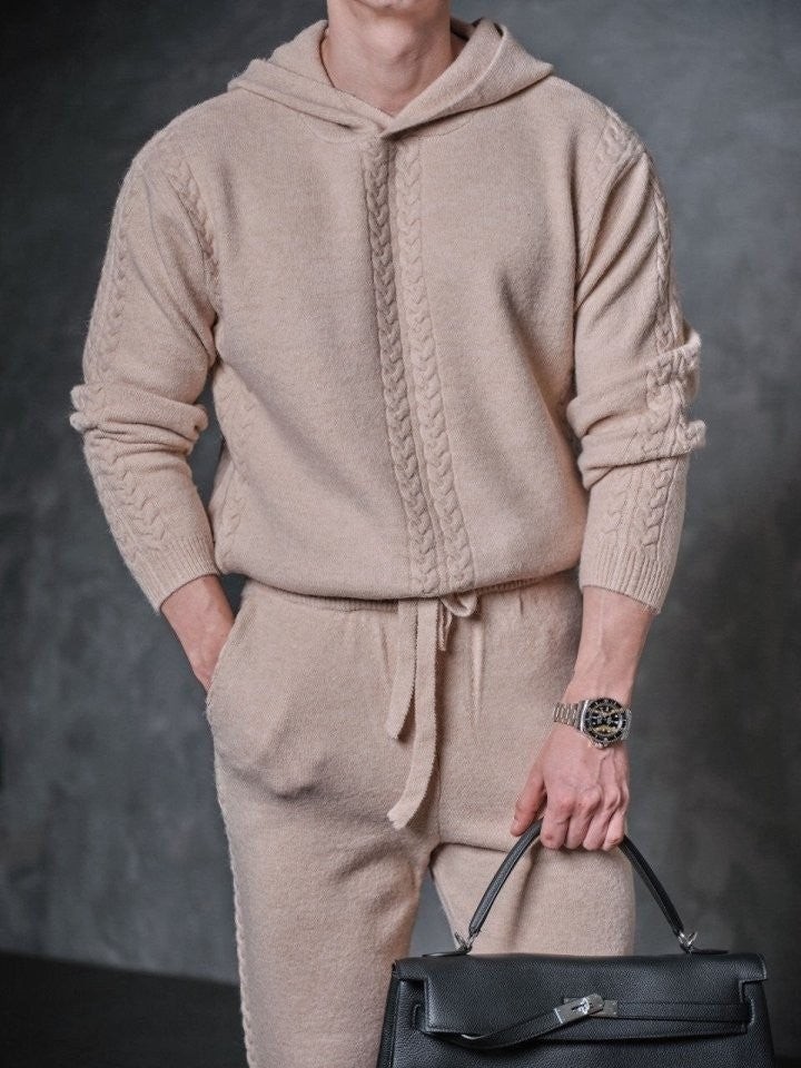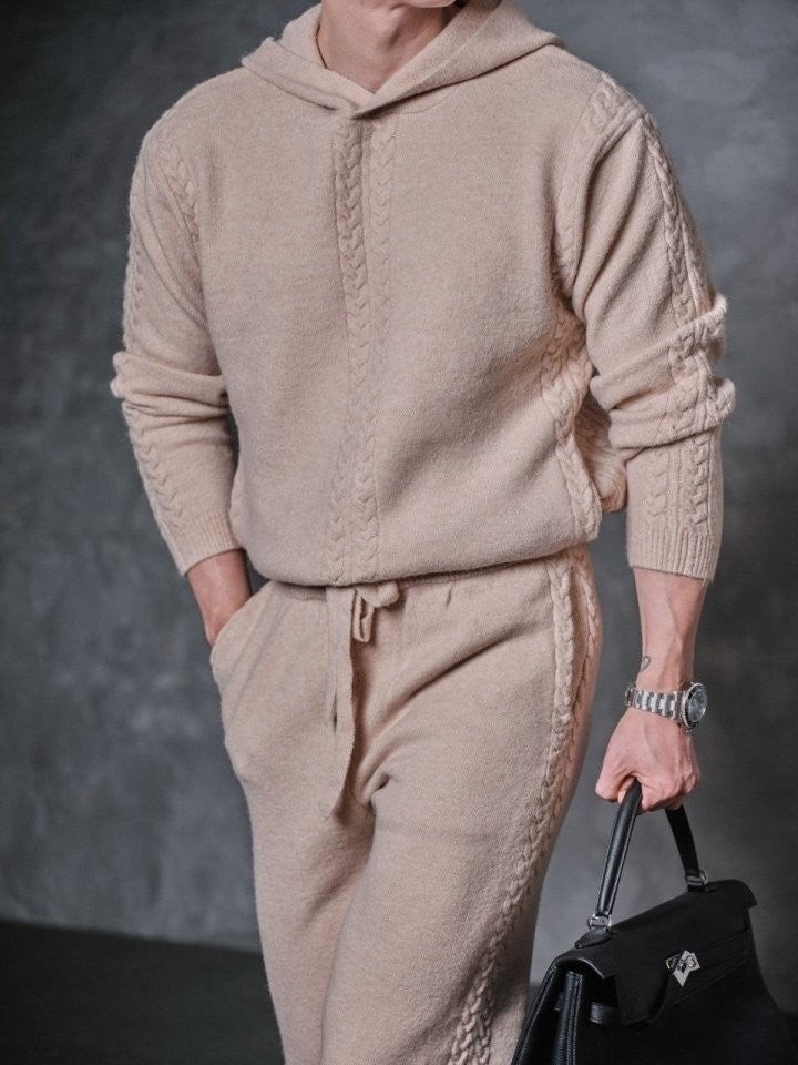 최고급 프리미엄 울85% 원단사용 케이블 조직 외간의 울 니트 셋업제품이며 상의에 주머니 장착 울 혼방 캐시미어 소재로부드러운 터치감과 뛰어난 보온성 립 조직의 포켓과 헴 디테일로 손이 자주가는 제품 입니다.