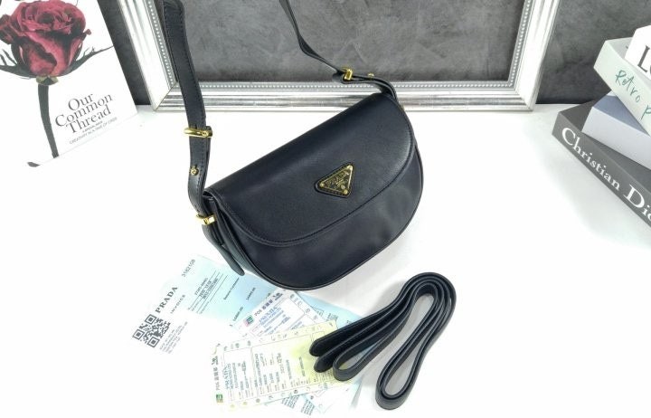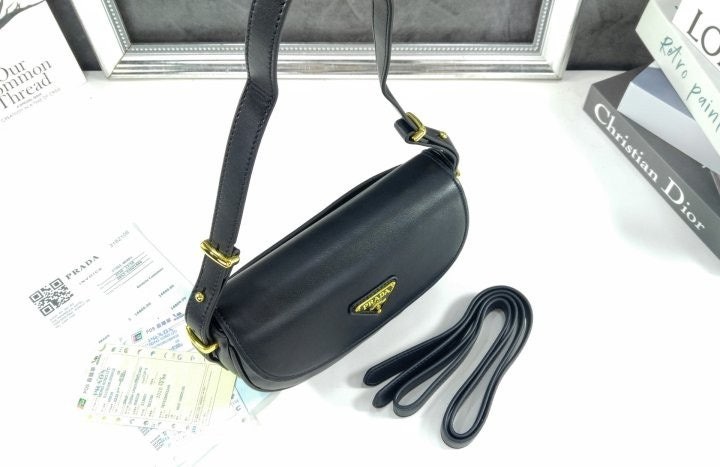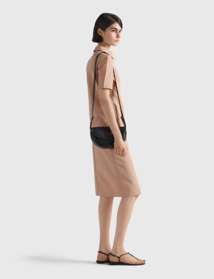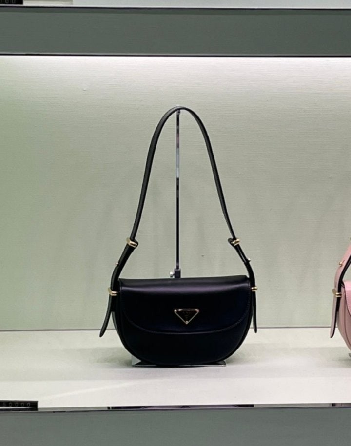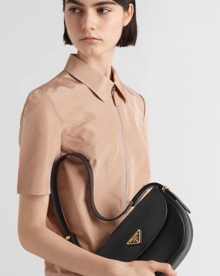 구조적인 볼륨의 날렵하고 컴팩트한 디자인이 돋보이는 세련되고 활용도 높은 가죽 백입니다. 우아한 맞춤 조절형 핸들로 어깨에 메거나 크로스바디로 착용 가능한 나파 인테리어의 플랩이 달린 백으로, 브랜드의 장인적 노하우가 담긴 에센셜하면서도 세련된 디테일이 특징입니다. 반짝이는 메탈 하드웨어로 포인트를 준 현대적인 디자인에 아이코닉한 에나멜 메탈 트라이앵글 로고가 장식되어 있습니다.