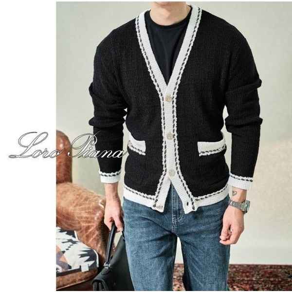 핸드메이드 공장에서 직접 제작한 가디건으로 넥라인 포켓라인 끝단 라인 모두 배색 디테일을 넣었습니다.