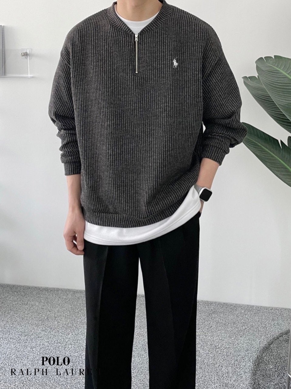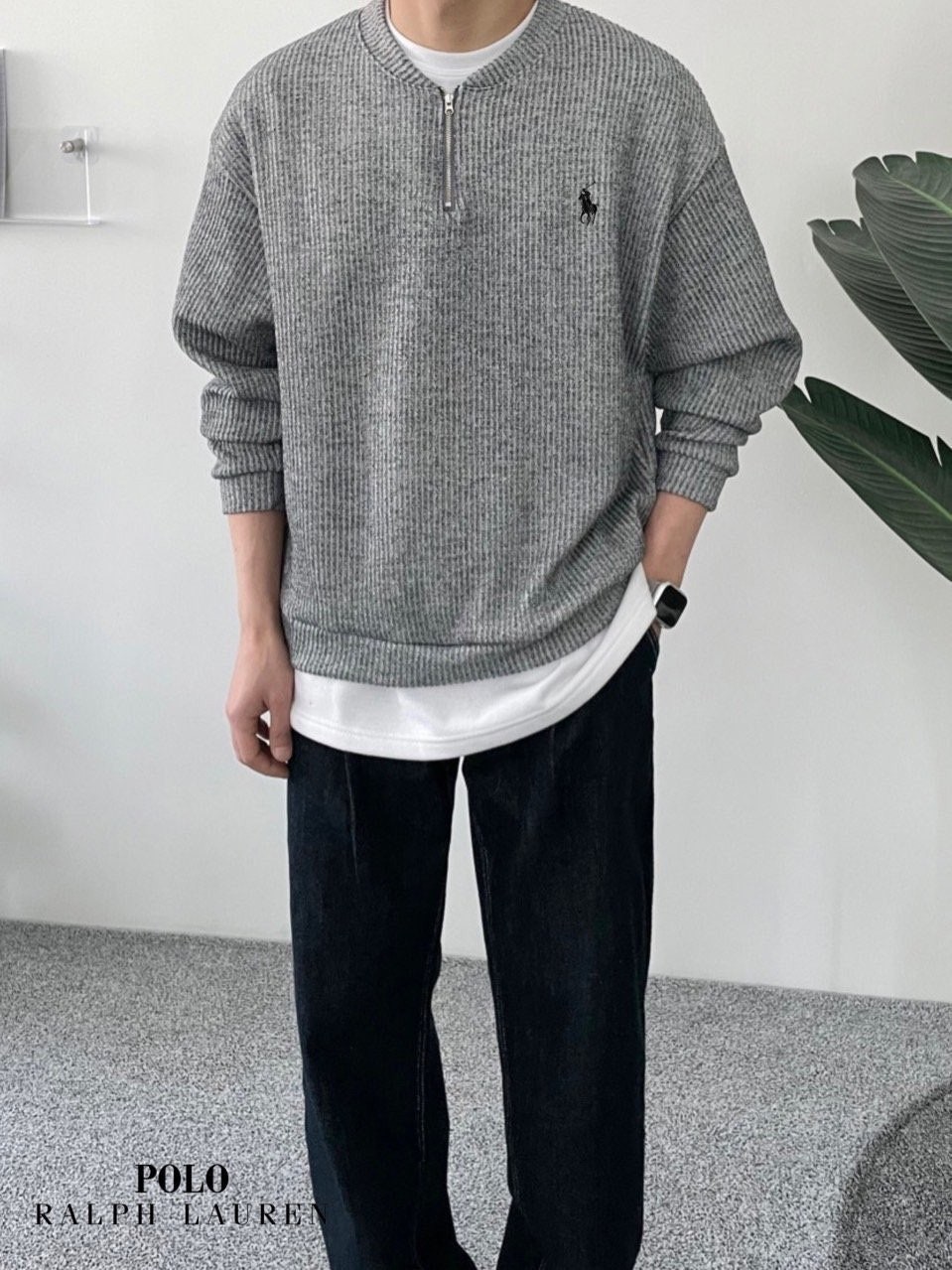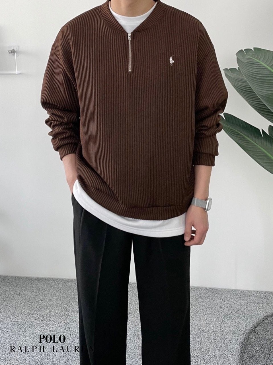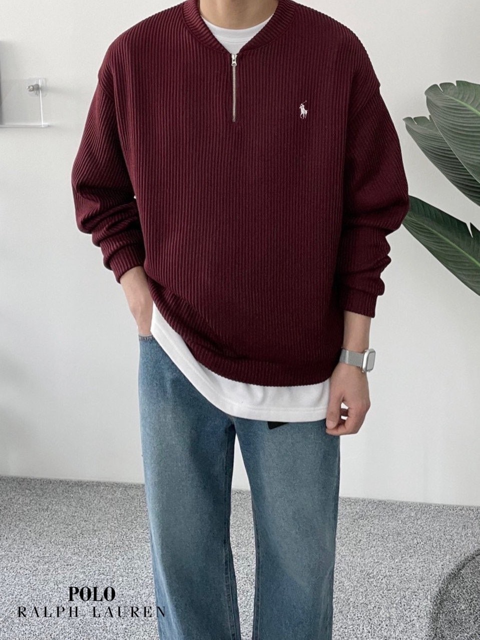 캐주얼무드로 베이직하게 착용하기 좋은 골지니트맨투맨입니다.