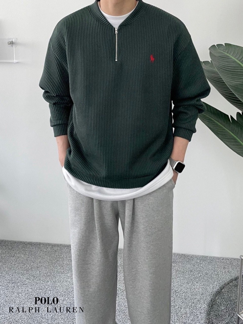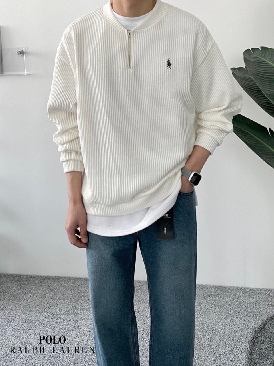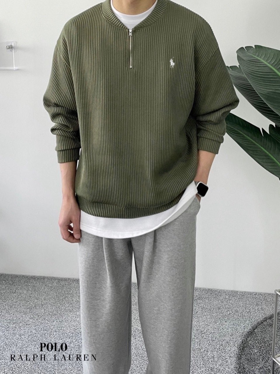 캐주얼무드로 베이직하게 착용하기 좋은 골지니트맨투맨입니다.