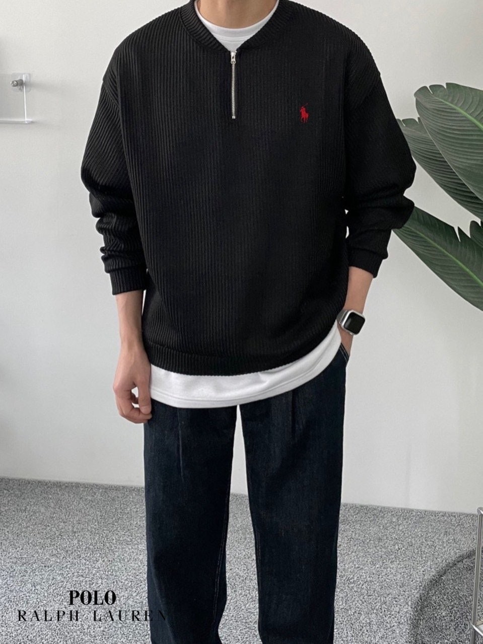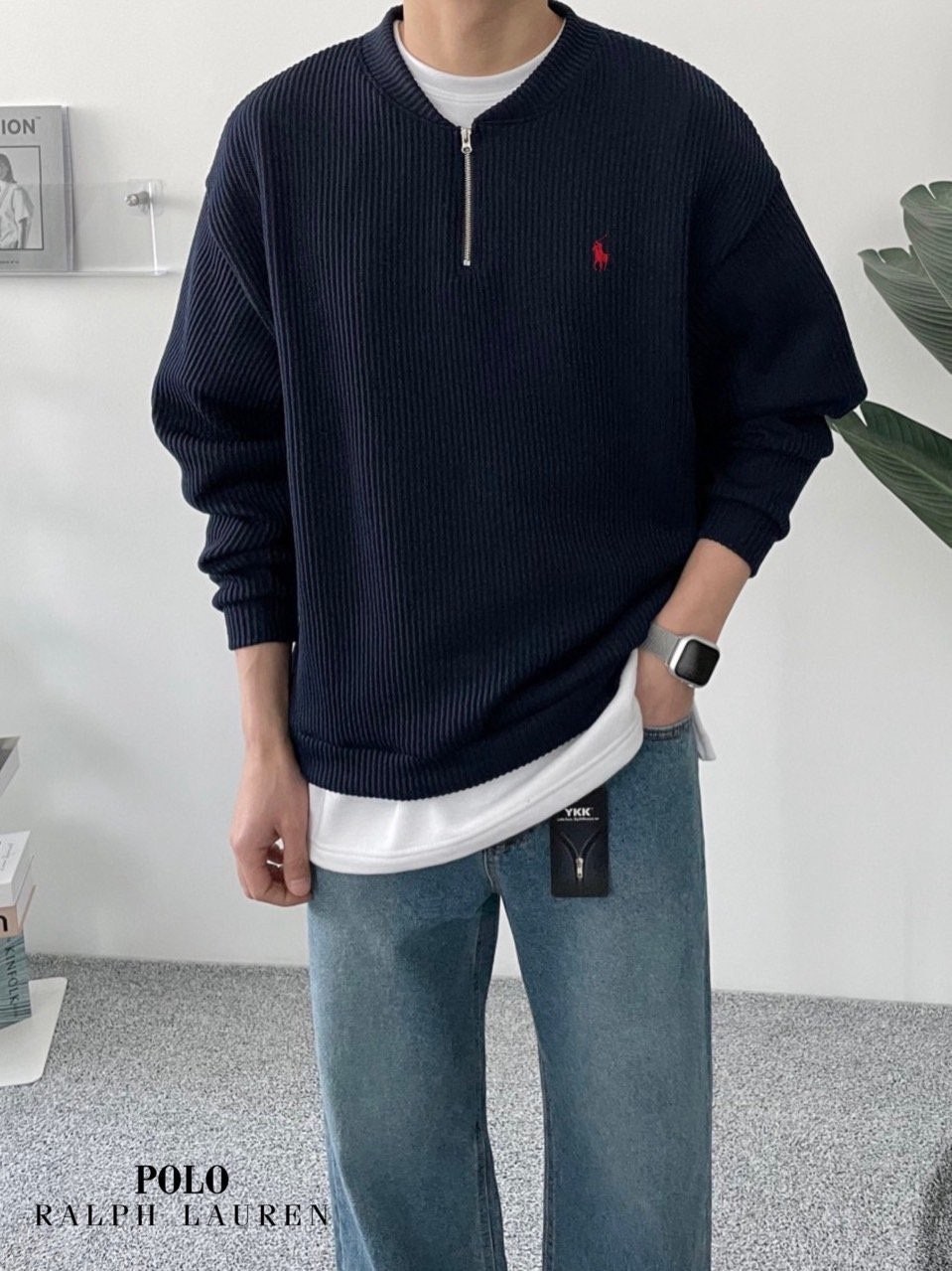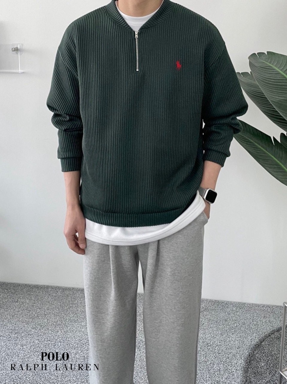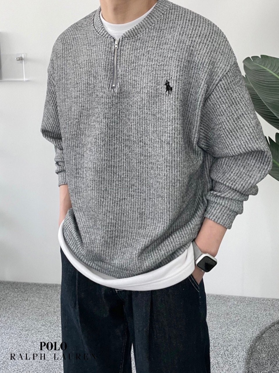 캐주얼무드로 베이직하게 착용하기 좋은 골지니트맨투맨입니다.