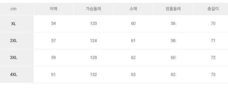 사이즈 - XL(100~105), 2XL(110), 3xL(115), 4xL(120)