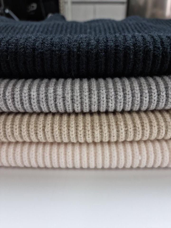 중량을 많이 높여서 묵직하고 탄탄하게 짜여진 고퀄리티 니트 입니다.