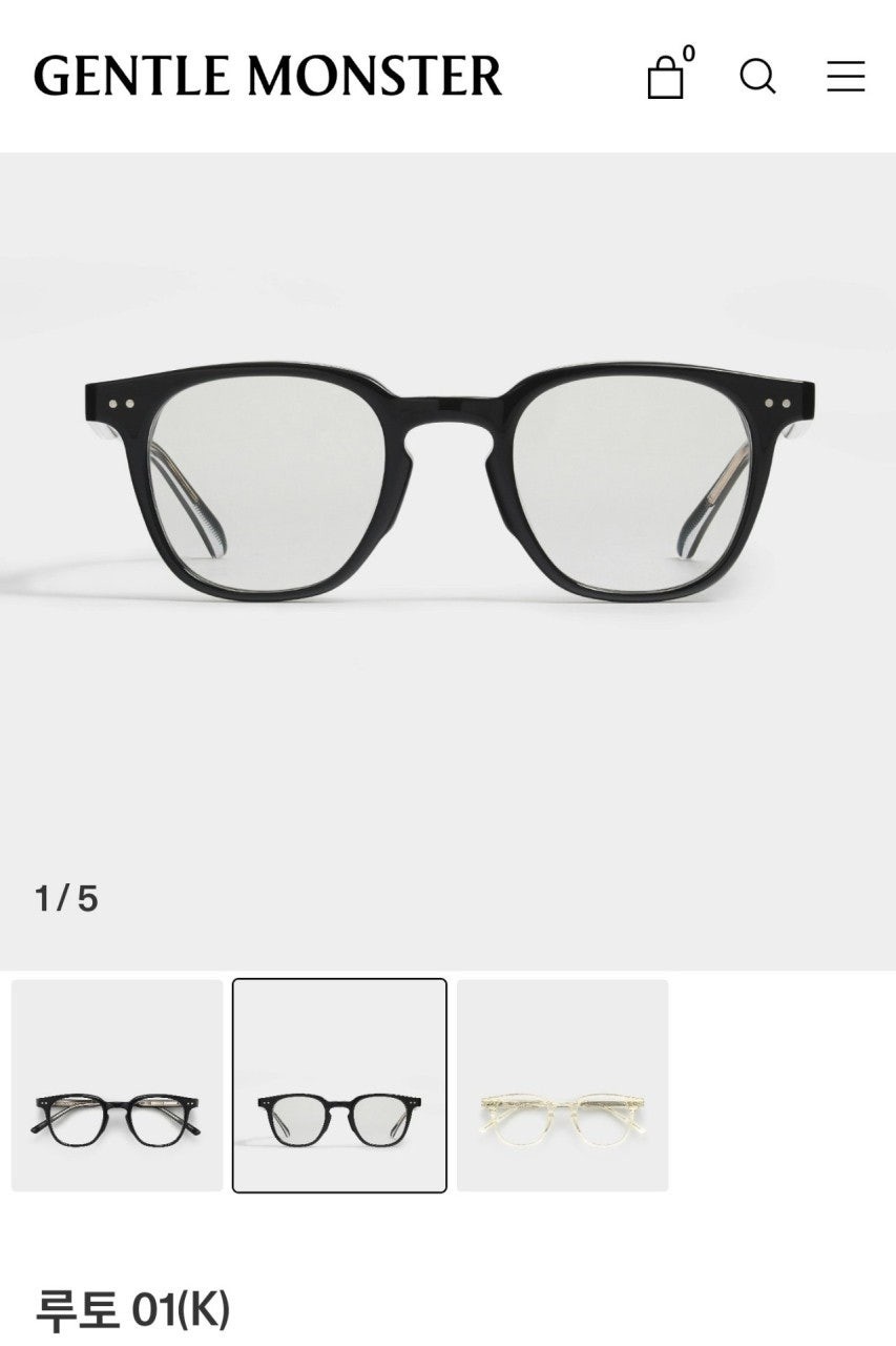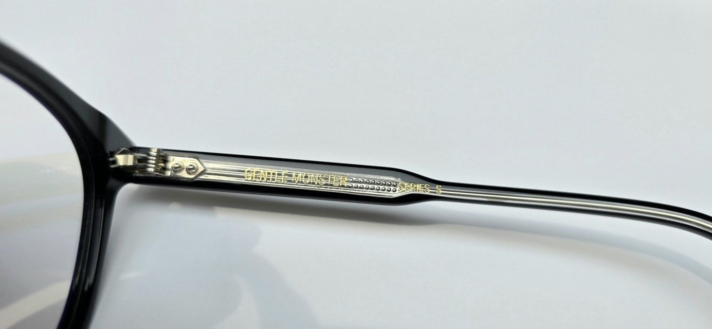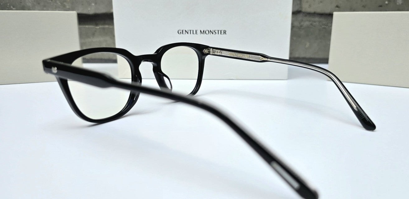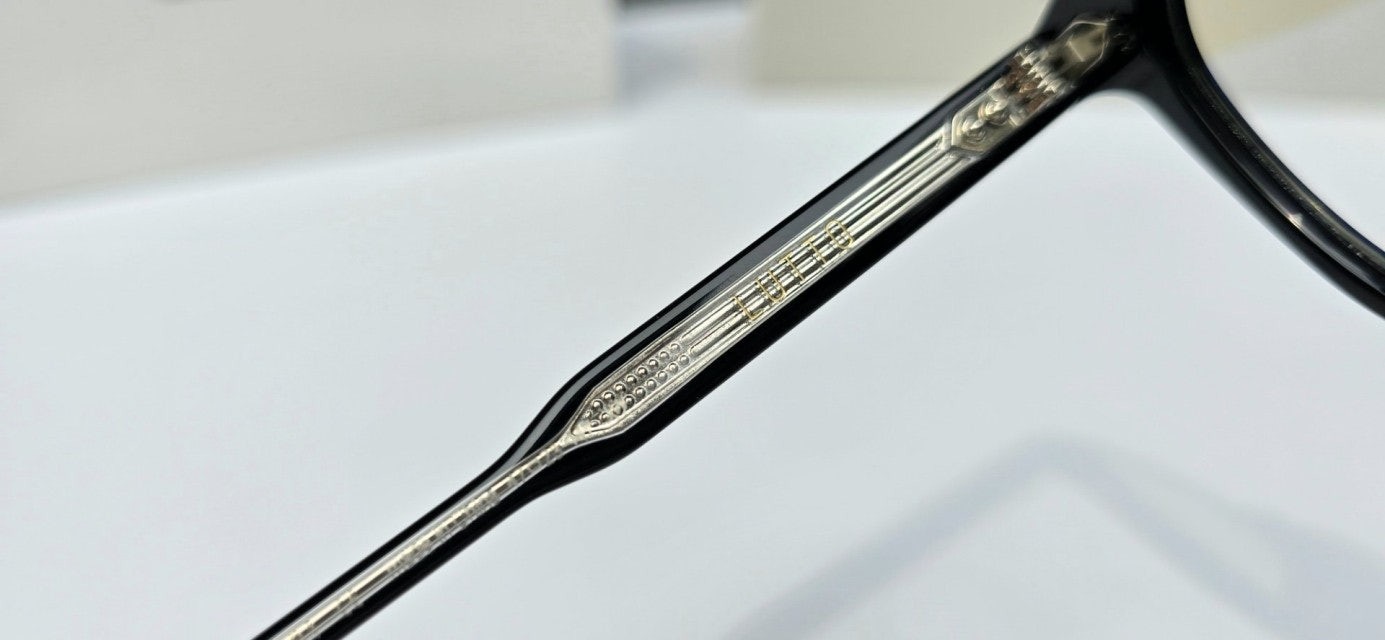 루토 01은 사각형태의 블랙 아세테이트 프레임 안경. 엔드피스의 커팅 라인과 과감한 곡선이 사용된 웰링턴형 프레임의 키홀 브릿지가 매력적인 제품. 템플은 블랙과 클리어가 결합된 이중 아세테이트 시트를 사용하였으며 엔드피스의 원형 장식과 템플의 라이닝 디테일 메탈 장식이 특징인 디자인
