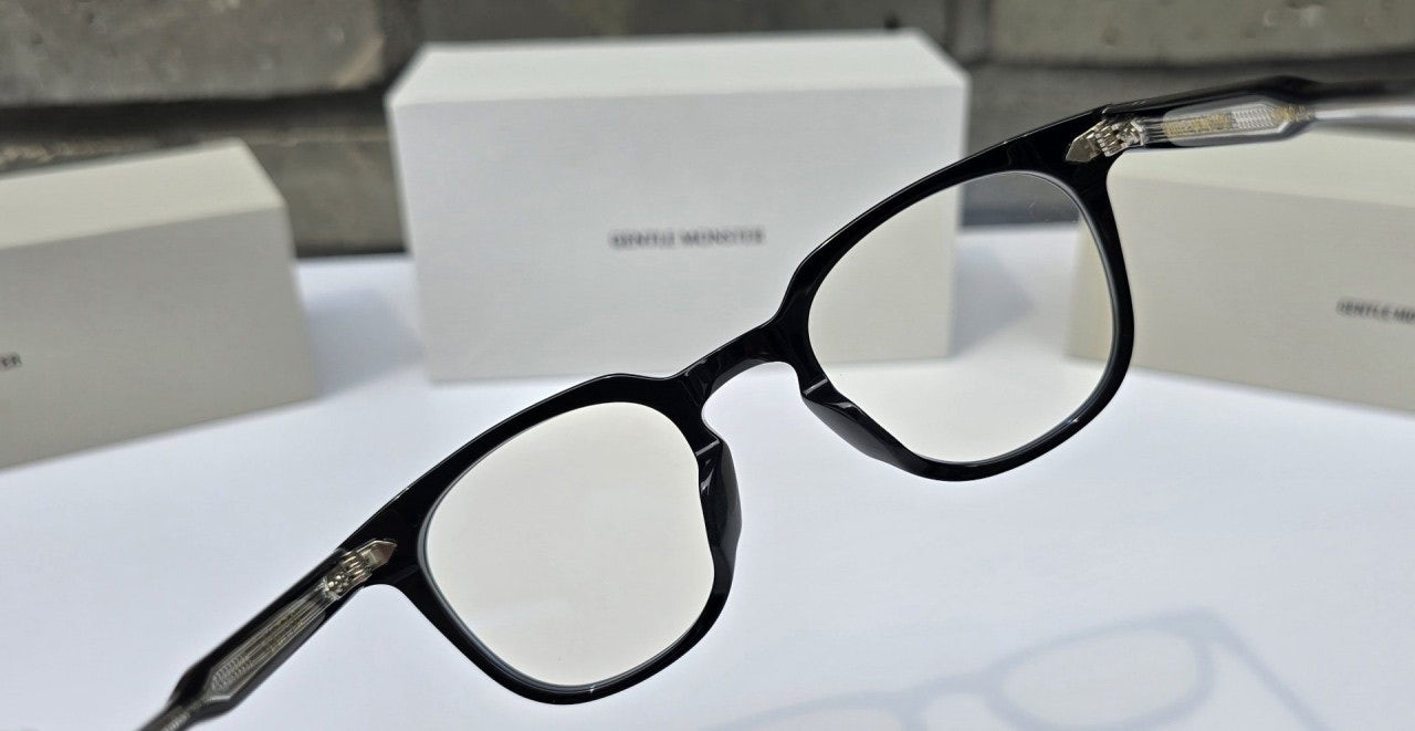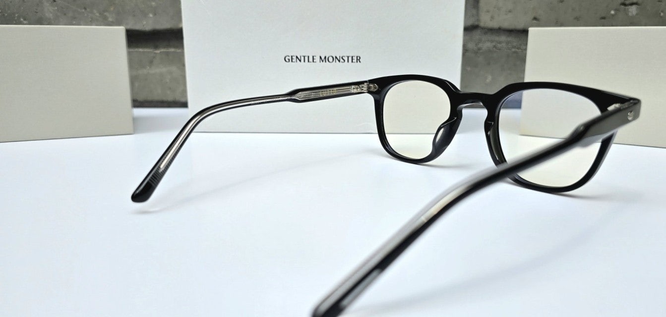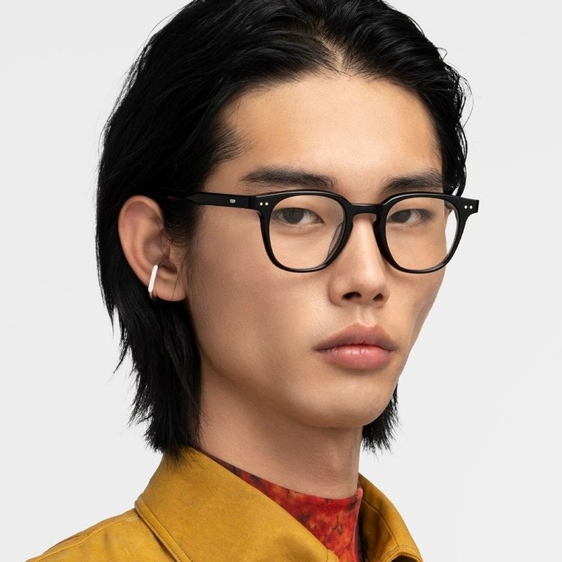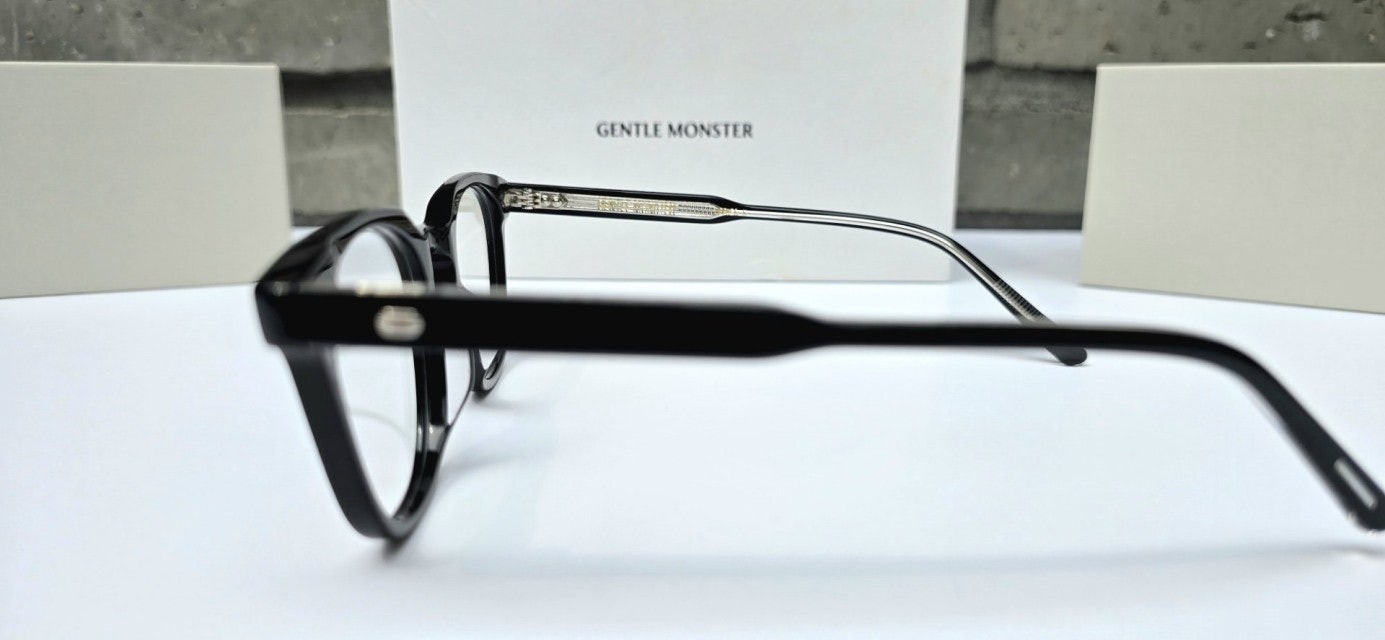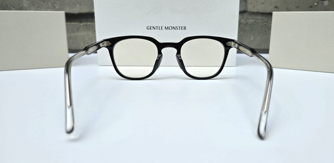 루토 01은 사각형태의 블랙 아세테이트 프레임 안경. 엔드피스의 커팅 라인과 과감한 곡선이 사용된 웰링턴형 프레임의 키홀 브릿지가 매력적인 제품. 템플은 블랙과 클리어가 결합된 이중 아세테이트 시트를 사용하였으며 엔드피스의 원형 장식과 템플의 라이닝 디테일 메탈 장식이 특징인 디자인