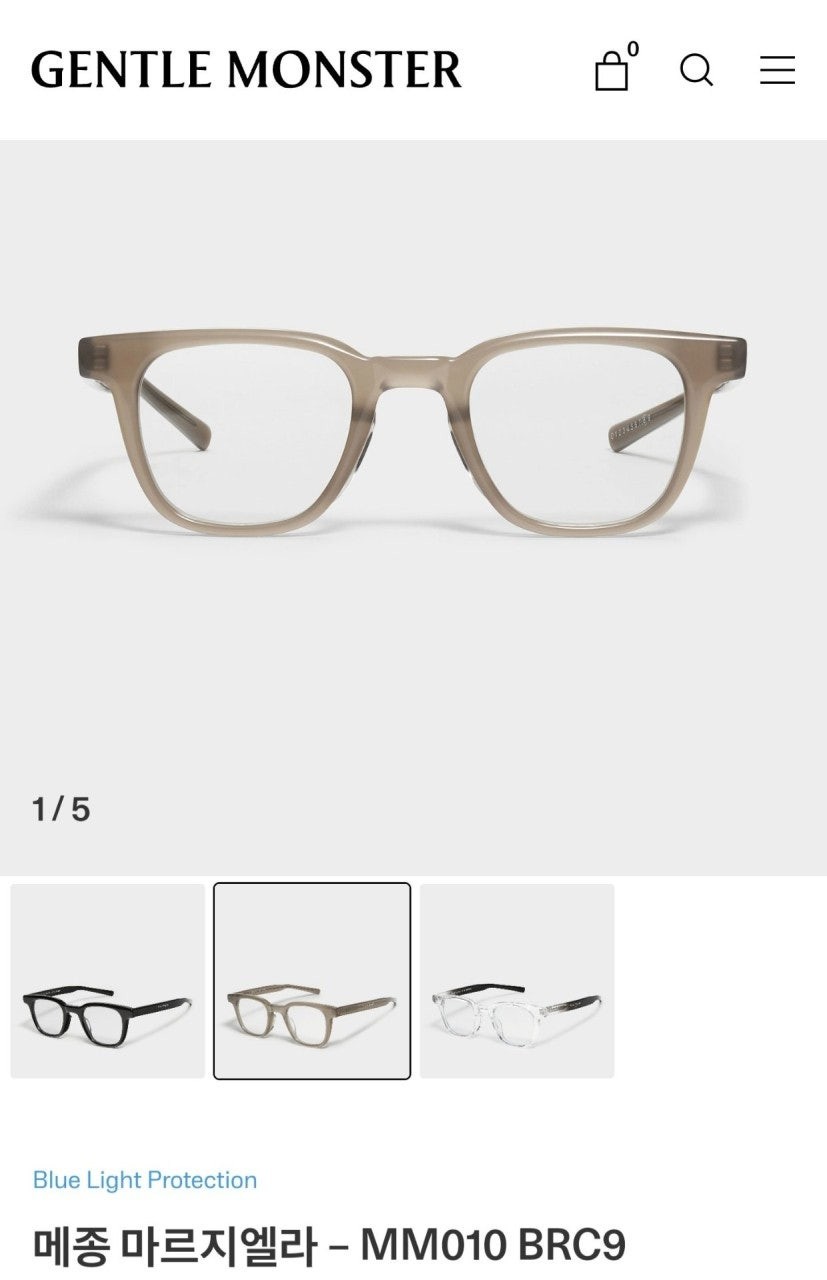 젠*와 메* 마르지엘라의 콜라보레이션 컬렉션 속 MM010 BRC9 안경.