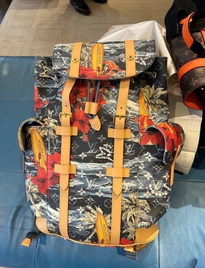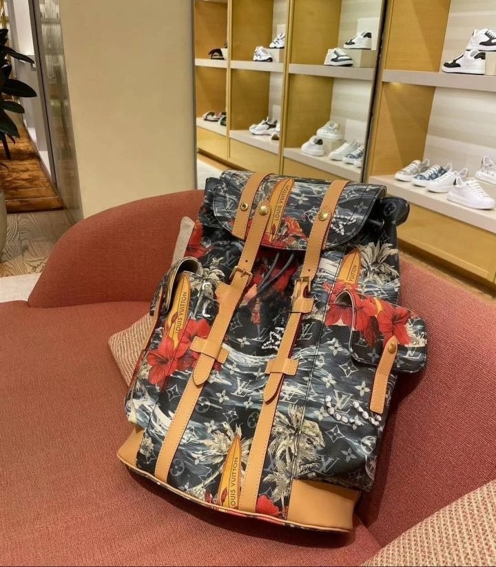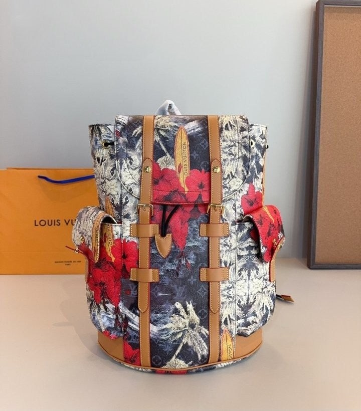클래식한 등산용 배낭에서 영감을 받아 퍼렐 윌리엄스의 모노그램 서핑 캔버스 소재로 선보이는 크리스토퍼 MM 백팩. 캔버스 위에 서핑보드와 꽃 등의 정교한 모티프 레이어를 결합한 프린트를 입혀 다채로운 빈티지 감성을 자아내는 아이템. 두 개의 옆면 외부 포켓을 포함하여 다수의 넉넉한 수납공간을 갖춘 편안하게 착용 가능한 디자인.