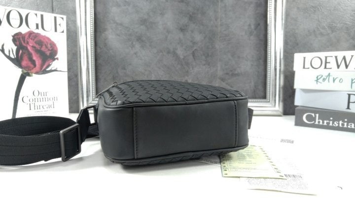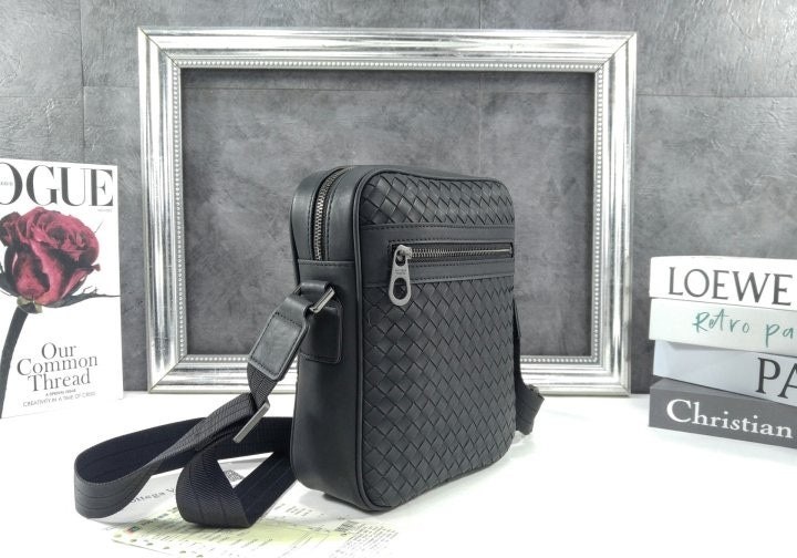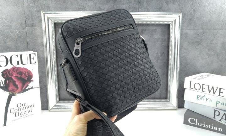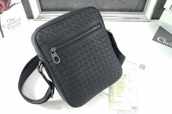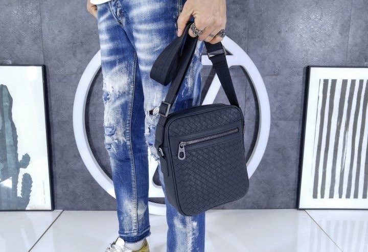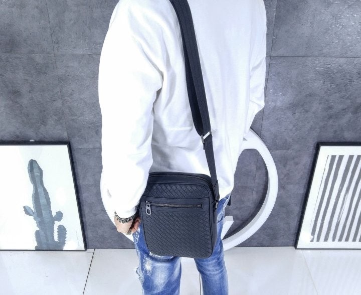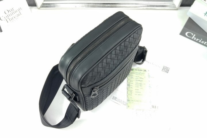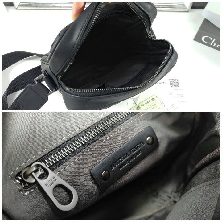• 탈착 가능한 스트랩과 앞지퍼 공간을 갖춘 인트레치아토 가죽 소재의 크로스바디 백