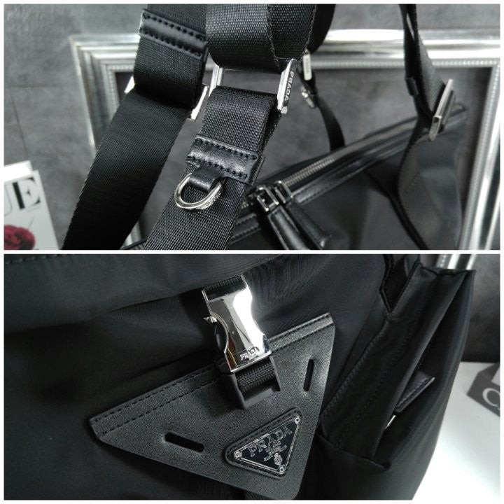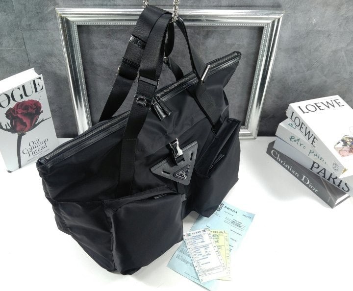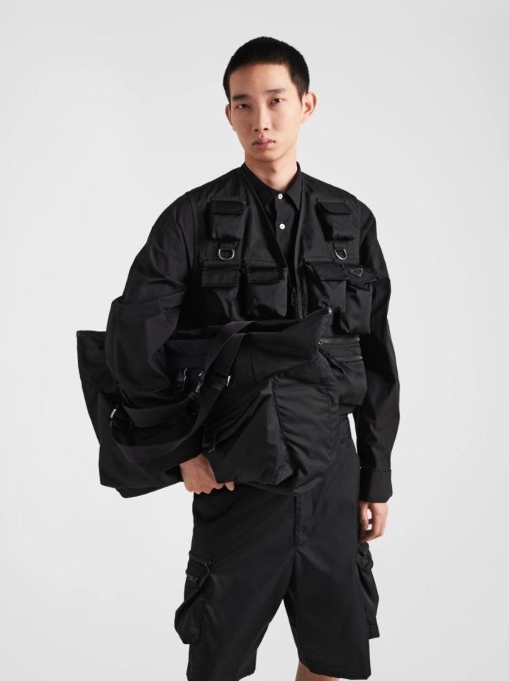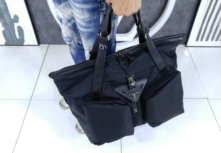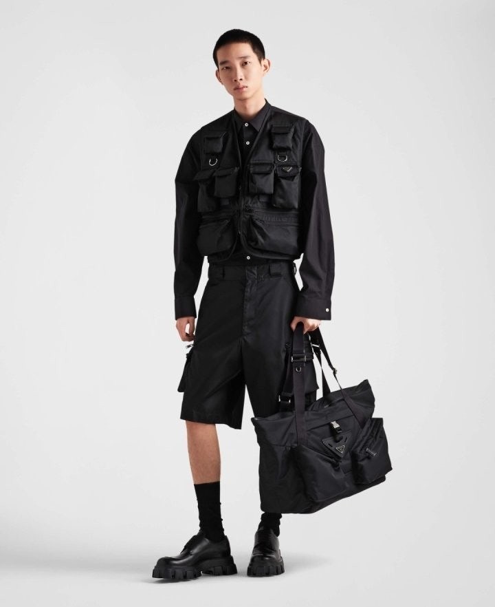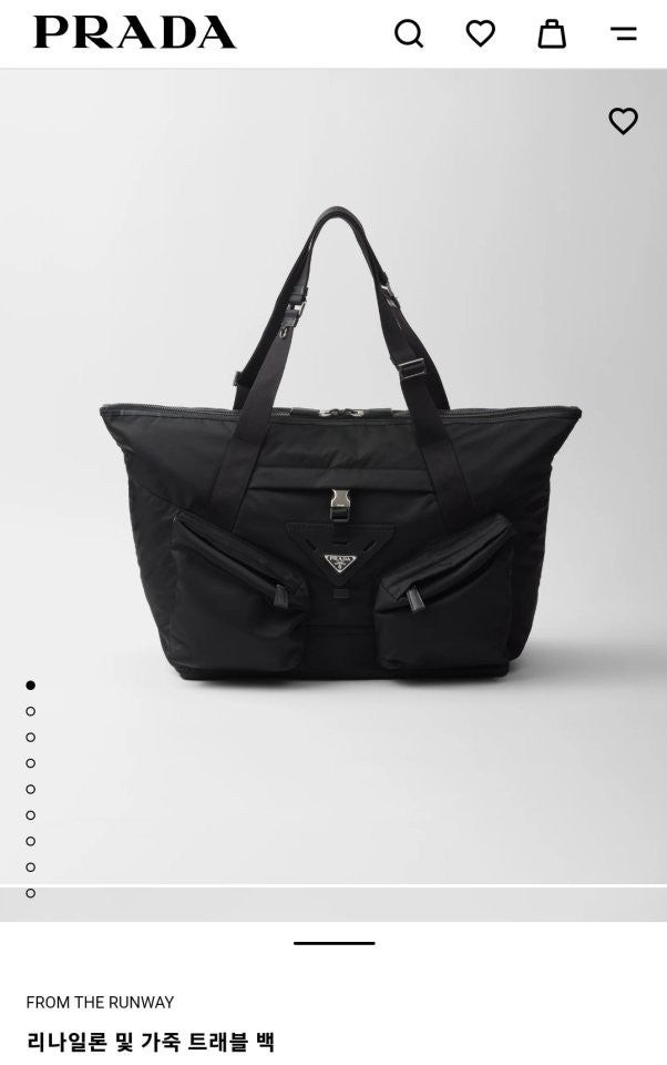 구조적인 볼륨과 강렬한 기하학적 라인으로 미학과 기능성이 조화를 이루는 디자인의 트래블 백입니다. 맞춤 조절형 핸들이 달린 넉넉한 디자인에 라지 유틸리티 스타일 측면 포켓과 측면 버클식 잠금장치가 달린 중앙 포켓이 특징이며, 아이코닉한 에나멜 메탈 트라이앵글 로고로 포인트를 더했습니다. 깔끔하고 정교한 기하학적 쉐입이 부드러운 마감의 리나일론과 균형을 이루며, 가죽 트림과 함께 현대적인 백에 다양한 활용도와 캐주얼한 감각을 더합니다.