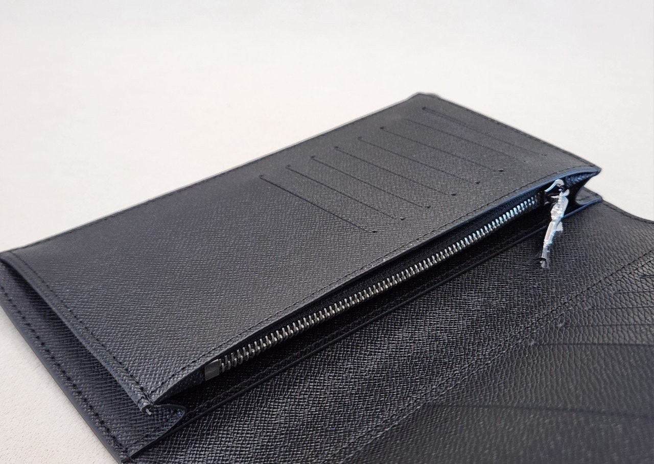 루***의 새로운 대표 소재인 검정색과 회색 조합의 모노그램 이클립스 캔버스로 남성미를 한껏 강조한 브라짜 월릿입니다. 가슴 포켓이나 재킷 주머니에 수납하기 좋은 아담한 크기이지만 동전,신용 카드,각종 메모를 보관하기에 부족함이 없습니다.