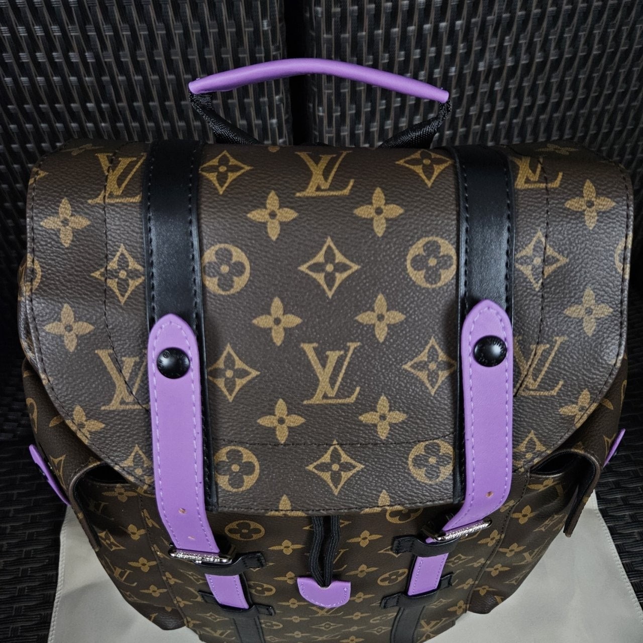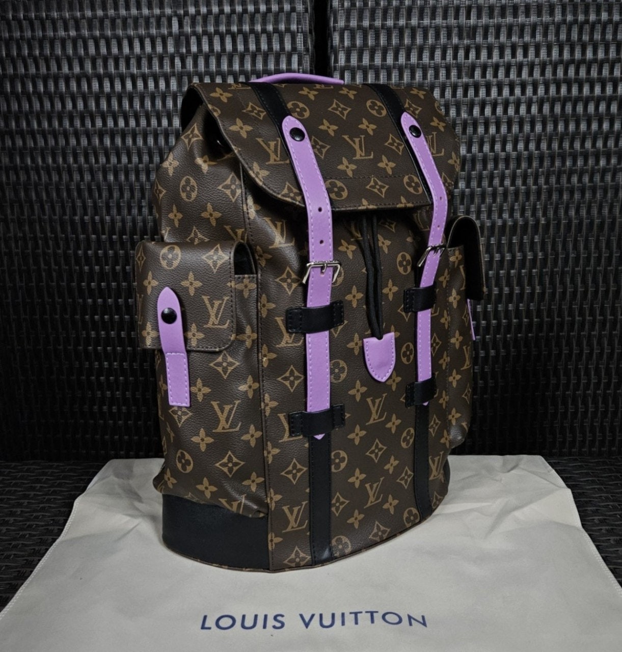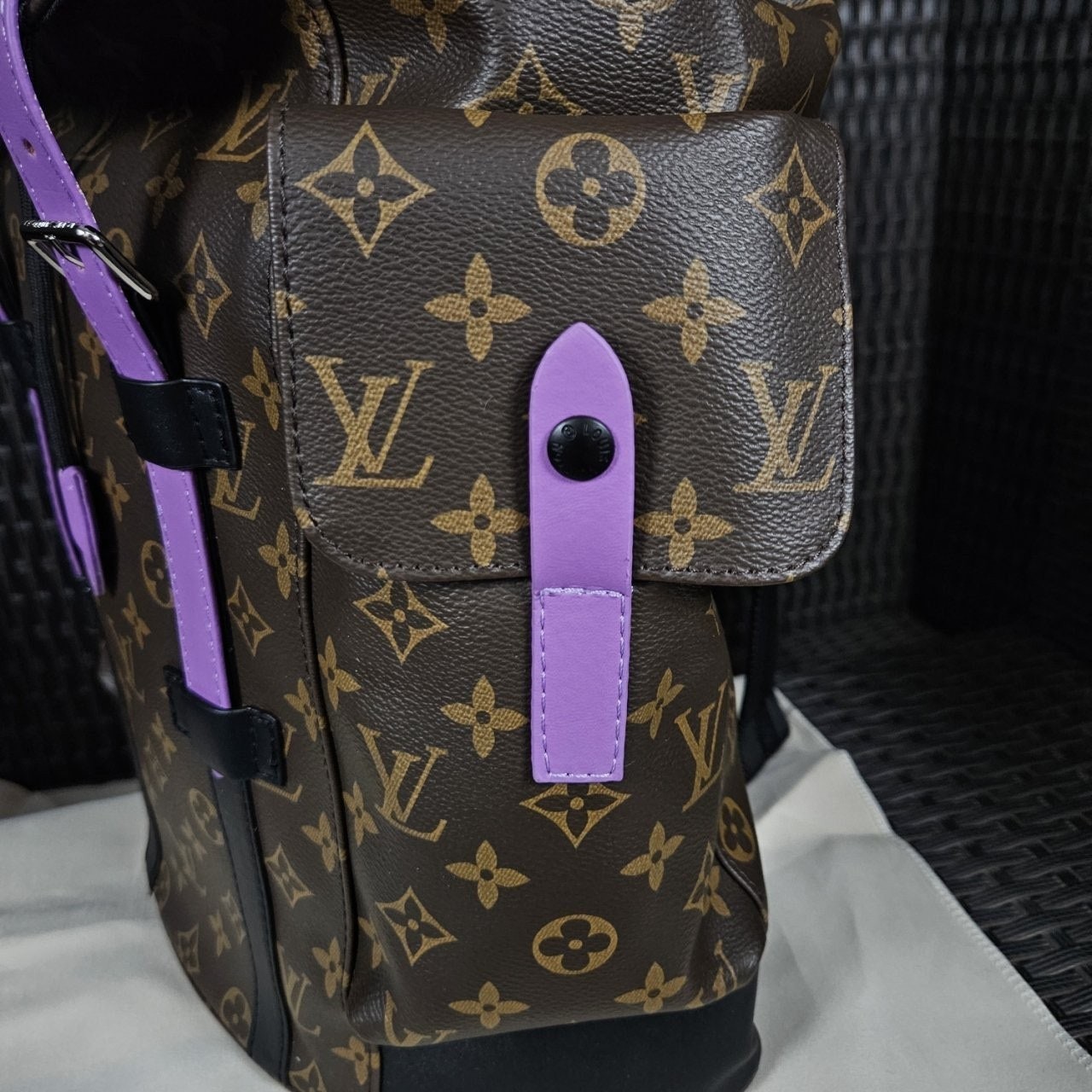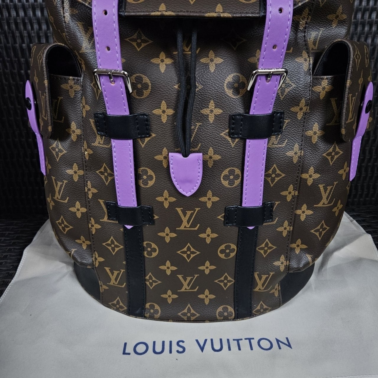 도시의 우아함과 하이킹 배낭의 견고한 정신이 결합된 이 버전의 Christopher 백팩은 디자이너 Virgil Abloh의 시그니처 색상 중 하나인 대담한 보라색으로 염색된 소가죽 트리밍이 있는 모노그램 마카사르 캔버스로 제작되었습니다. 2개의 측면 포켓과 특수 태블릿 컴퓨터 수납공간이 있어 실용적이고 세련된 휴대용 가방입니다.