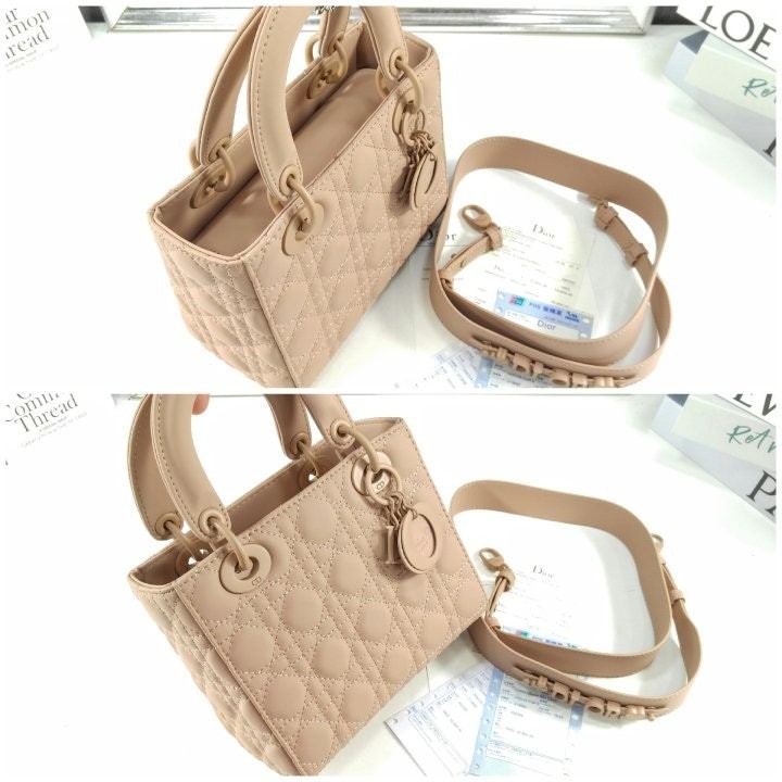 우아함과 아름다움에 대한 Di*r의 비전을 완벽하게 표현한 Lady Di*r My ABCDi*r 백입니다. 세련되고 고급스러운 분위기를 연출하는 타임리스한 디자인으로, 까나쥬 스티칭으로 장식한 블러쉬 컬러 양가죽의 퀼팅 텍스처가 한눈에 시선을 사로잡습니다. 무광 핑크 소재의 D.I.O.R. 블록 참이 실루엣에 우아한 터치를 더합니다. 숄더 스트랩에 뱃지를 장식해 개성을 표현할 수 있는 독특한 스몰 디자인으로 핸드백이나 크로스백으로 연출하기 좋습니다.