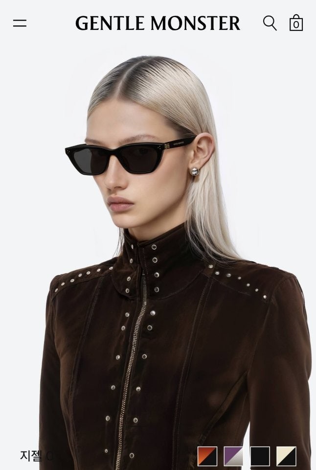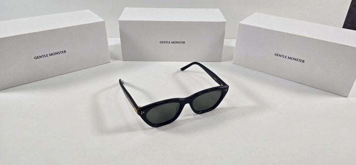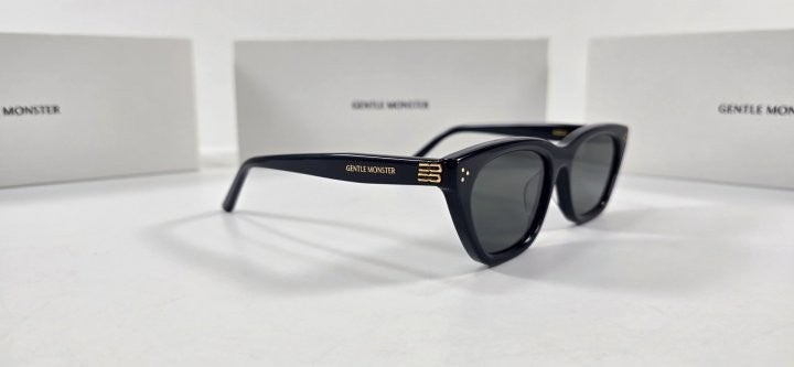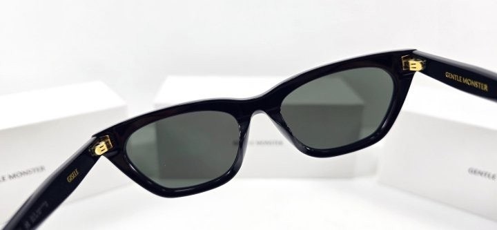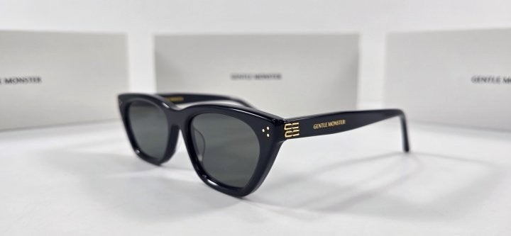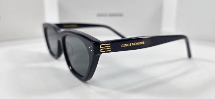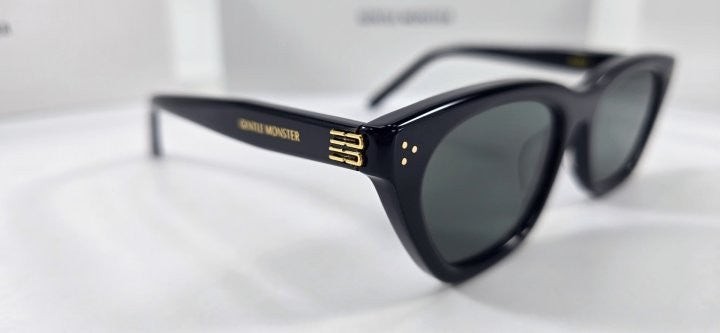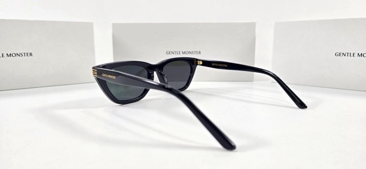 모던한 감각의 블랙 아세테이트 소재의 캣아이 프레임 선글라스