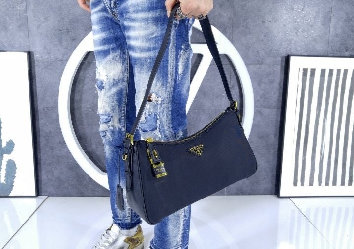 세련된 가죽 디테일이 돋보이는 리나일론 소재의 숄더백으로 모던하고 활용도 높은 디자인이 특징입니다. 지퍼 및 자물쇠 클로저가 있는 넉넉한 사이즈의 백이며 메탈 트라이앵글 로고로 장식되어 있습니다.