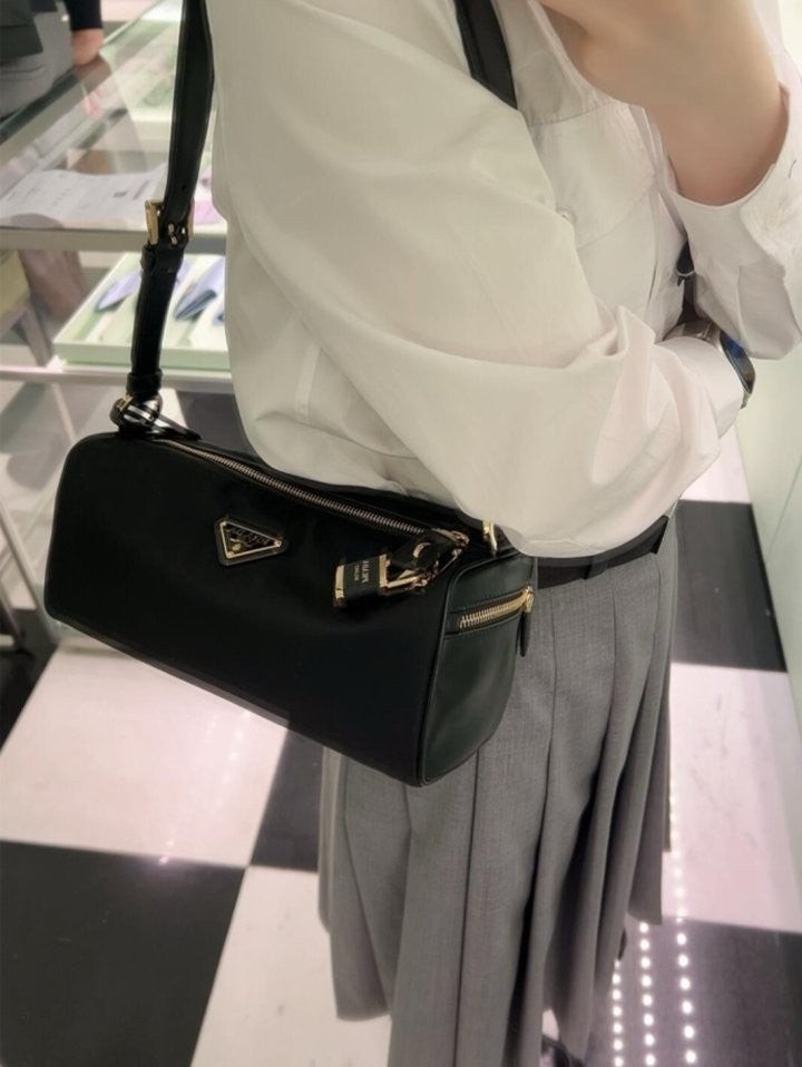 프** 코드의 본질을 담은 세련되고 활용도 높은 디자인의 숄더백으로 가죽 디테일이 돋보이는 리나일론으로 제작되었습니다. 골드톤 메탈 하드웨어와 지퍼 클로저의 우아한 자물쇠가 독특한 감성을 더합니다.