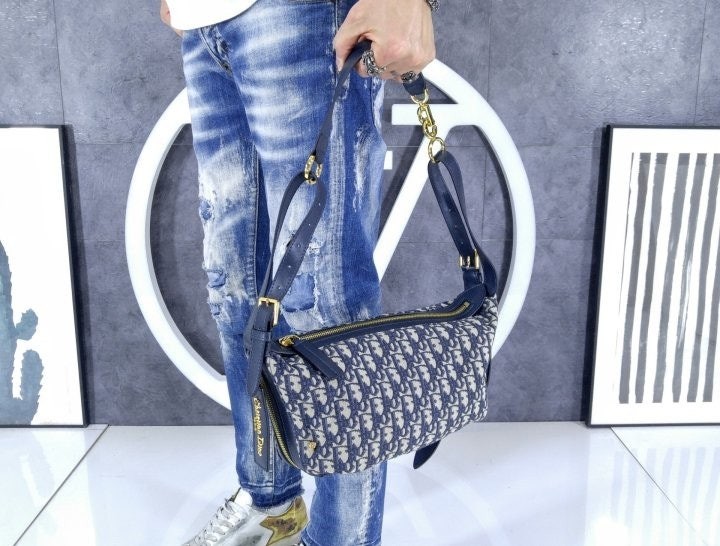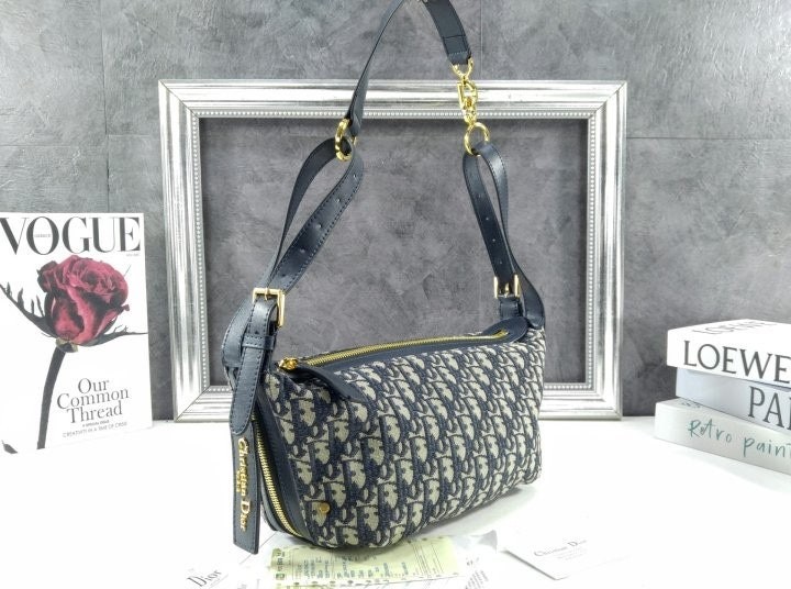 모던하고 부드러운 호보 실루엣의 D-Journey 백입니다. 블루 Di*r Oblique 자카드 소재로 제작되었으며, 지퍼 포켓을 갖춘 메인 수납공간과 Christ*an Di*r Paris 시그니처 라지 가죽 지퍼 풀 디테일의 옆면 데코 포켓 2개가 특징입니다. 길이 조절 가능한 가죽 탑 핸들 및 가죽 스트랩으로 완성된 미디엄 백으로 데일리 핸드백, 숄더백, 크로스백으로 활용하기 좋습니다.