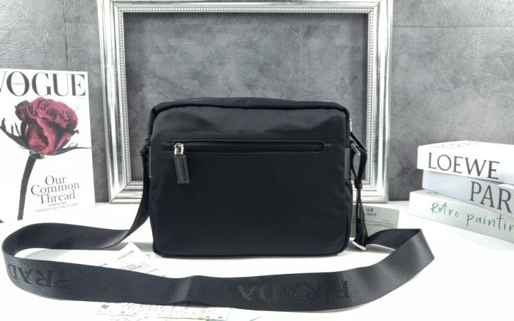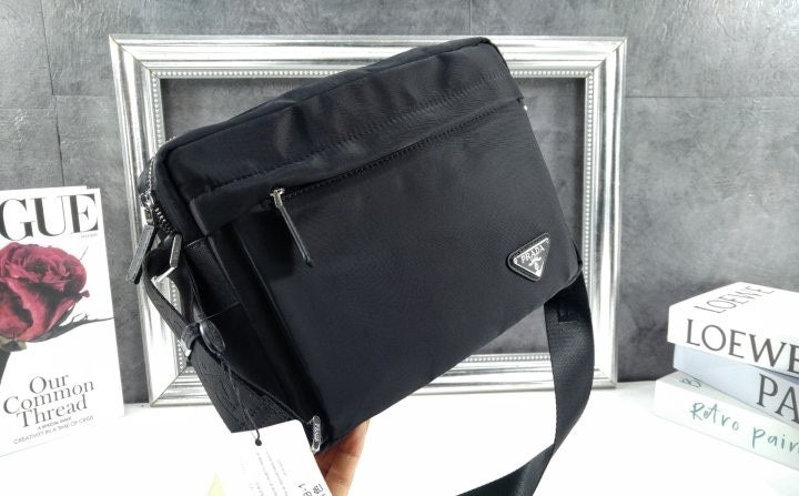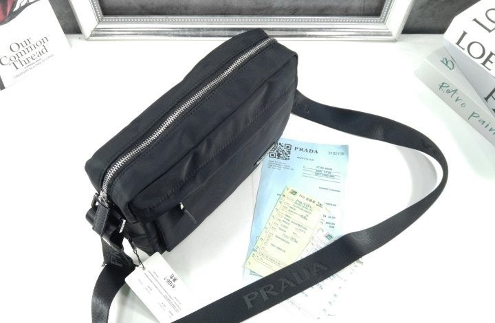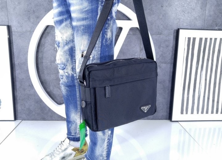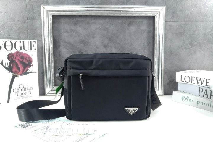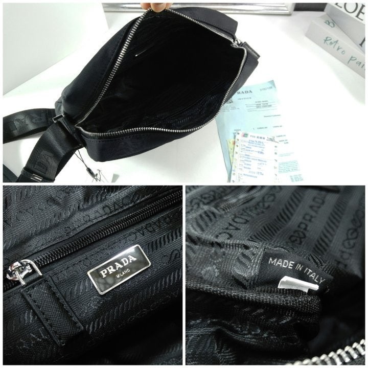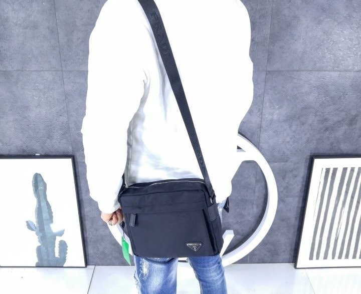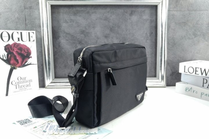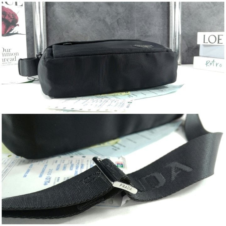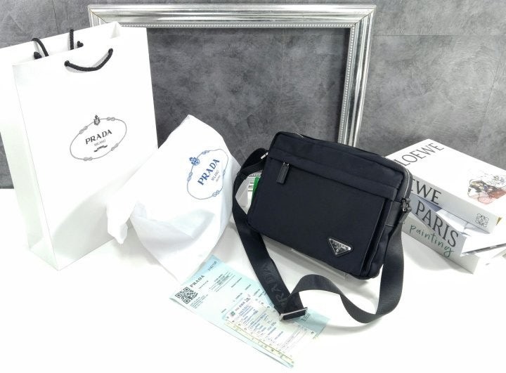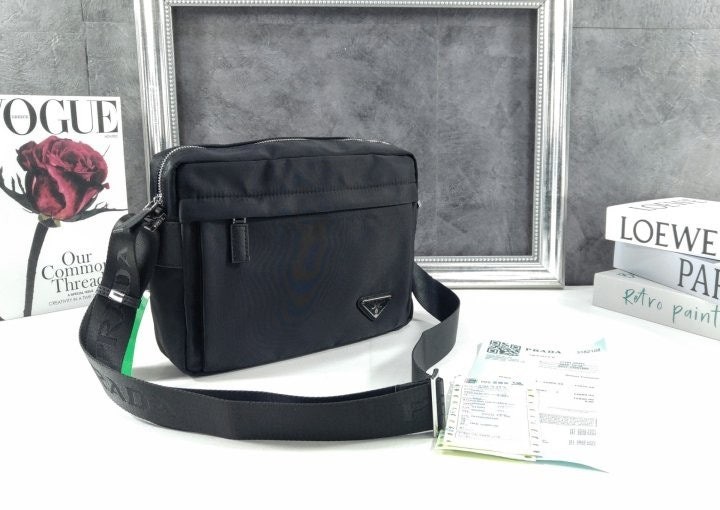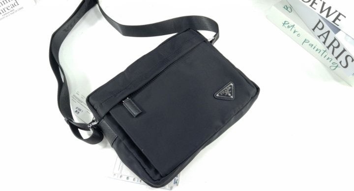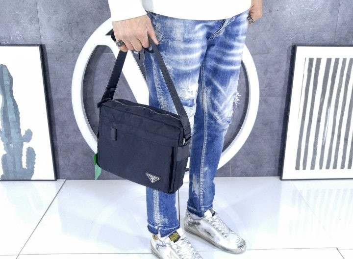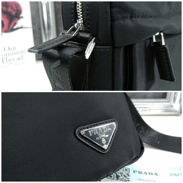 맞춤 조절형 우븐 나일론 테이프 숄더 스트랩이 제공되고 지퍼 클로저가 적용되었으며, 측면에 장식된 에나멜 메탈 트라이앵글 로고가 아이코닉한 감각을 더합니다.