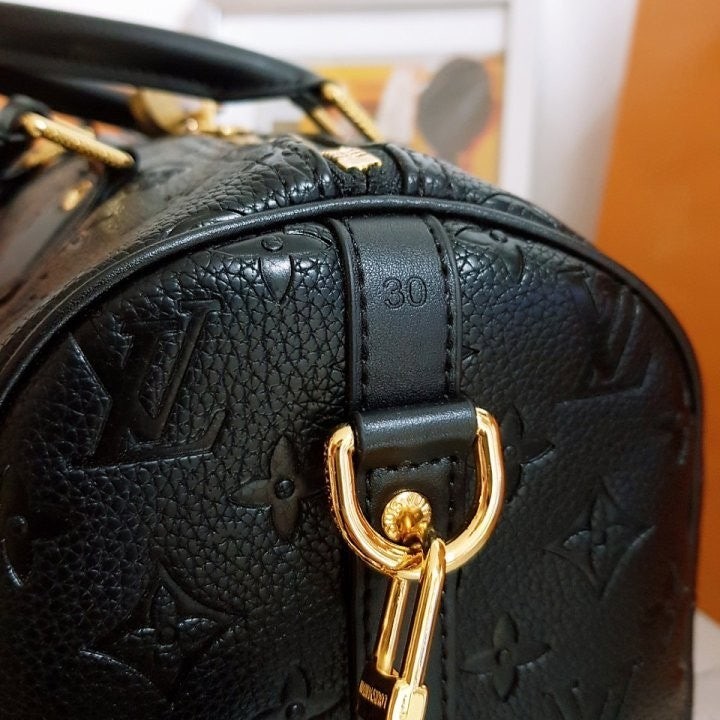 아이코닉한 스피디 백을 매우 가볍고 부드러운 소재로 새롭게 선보이는 스피디 소프트 30(Speedy Soft 30). 새로운 모노그램 앙프렝뜨 가죽 소재. 부드러운 바닥과 유연함을 한층 더해주는 스웨이드 카프스킨 소재의 안감을 구성한 아이템. 손으로 들거나 크로스 바디 백으로 또는 팔에 걸어 연출할 수 있는 디자인. 트렌디함과 실용성을 겸비한 활용도 높은 핸드백.