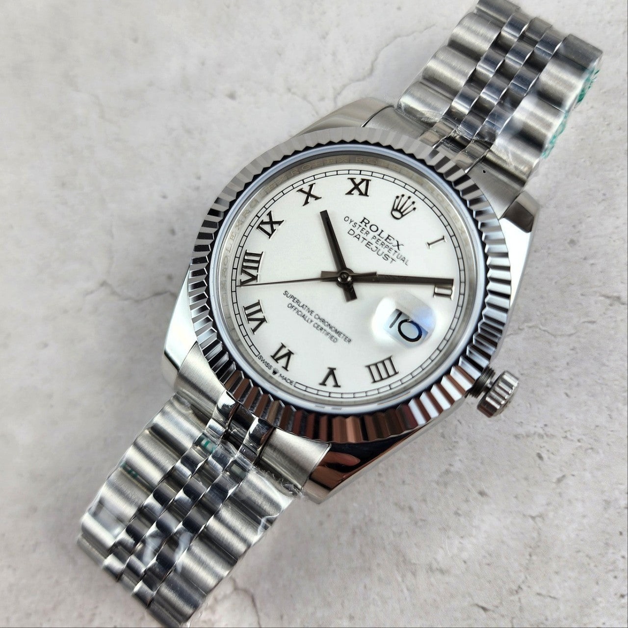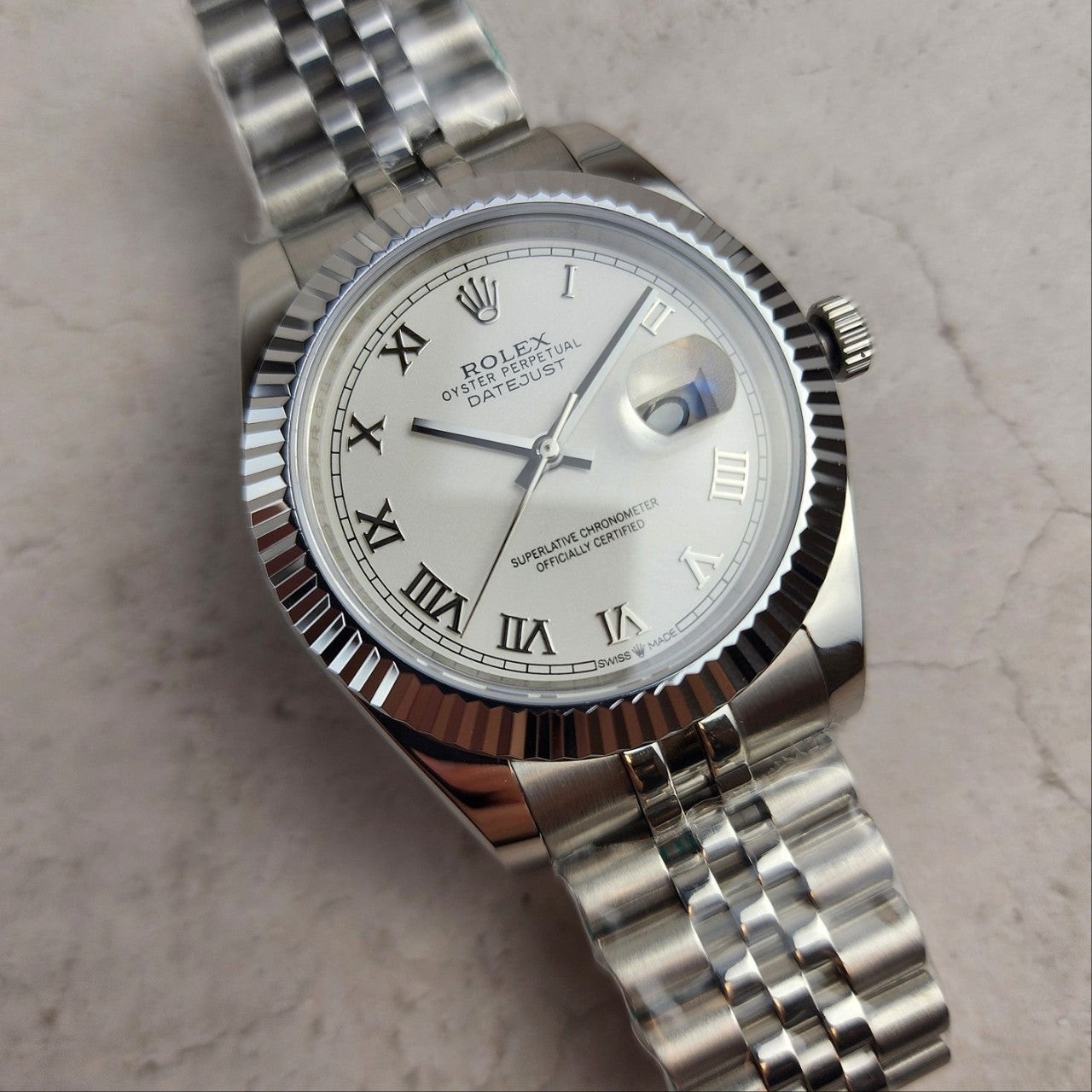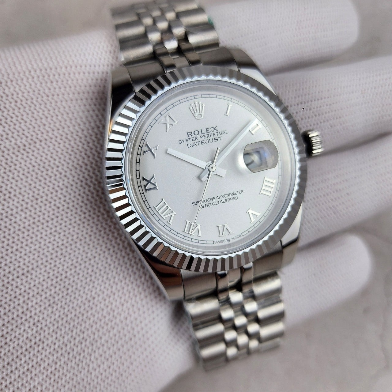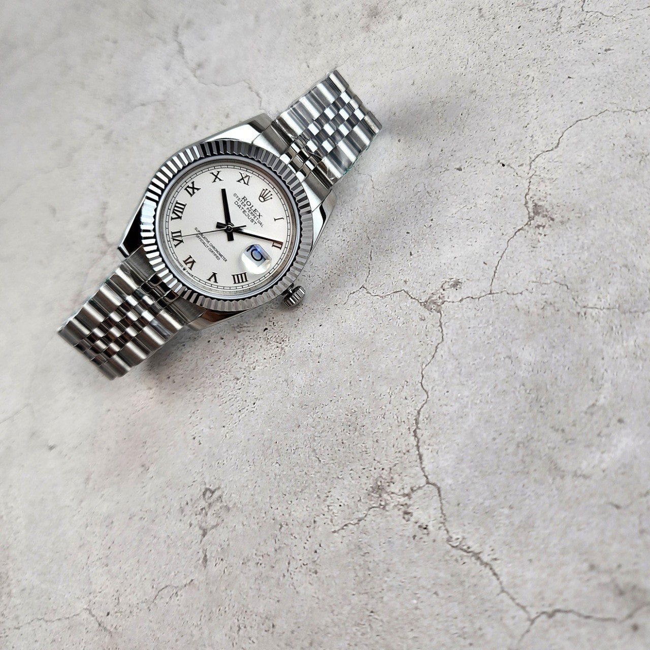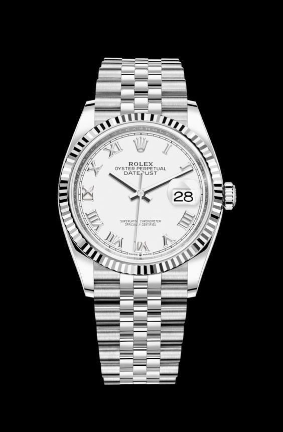 플루티드베젤에 쥬빌레줄을 줄여 일명 플루쥬빌 모델로 전국매장 품절 심지어 프리미엄 가격까지 형성되고 있는 시계입니다. 로마버젼에 화이트 다이얼이 매력적이면 41mm 크기로 남성용 예물시계 베스트 no.1 이라고 해도 과언이 아닙니다. 서브마리너가 너무 투박해서 싫으신분들에게 데이저스트 41mm 남성용 모델을 적극 추천드립니다.