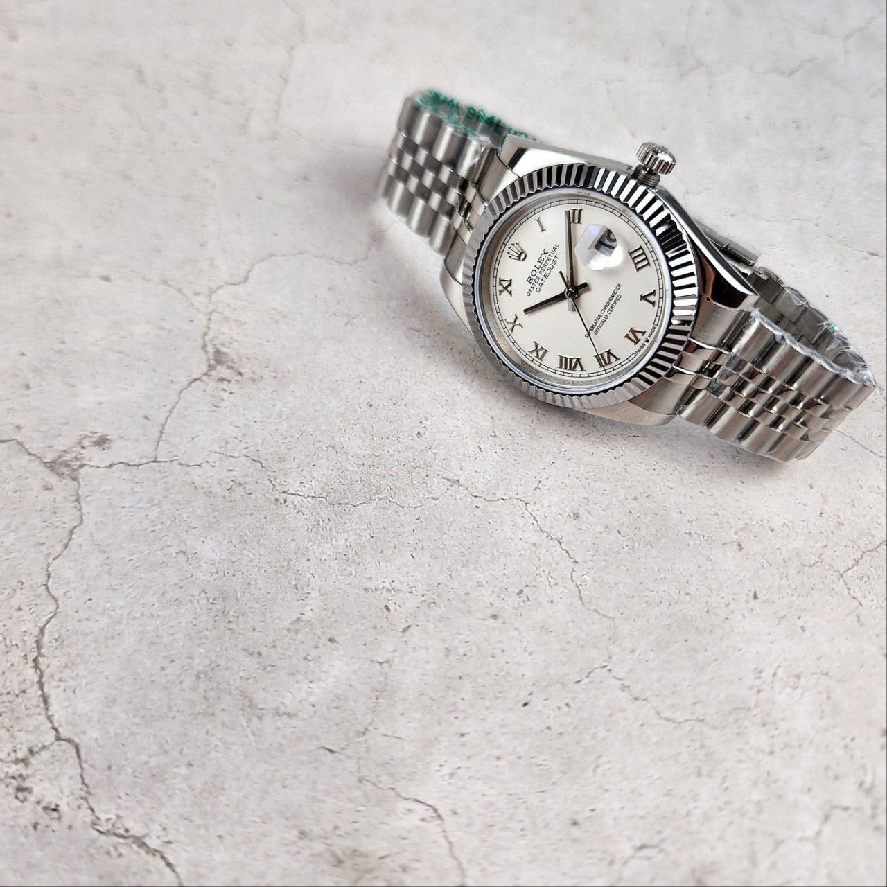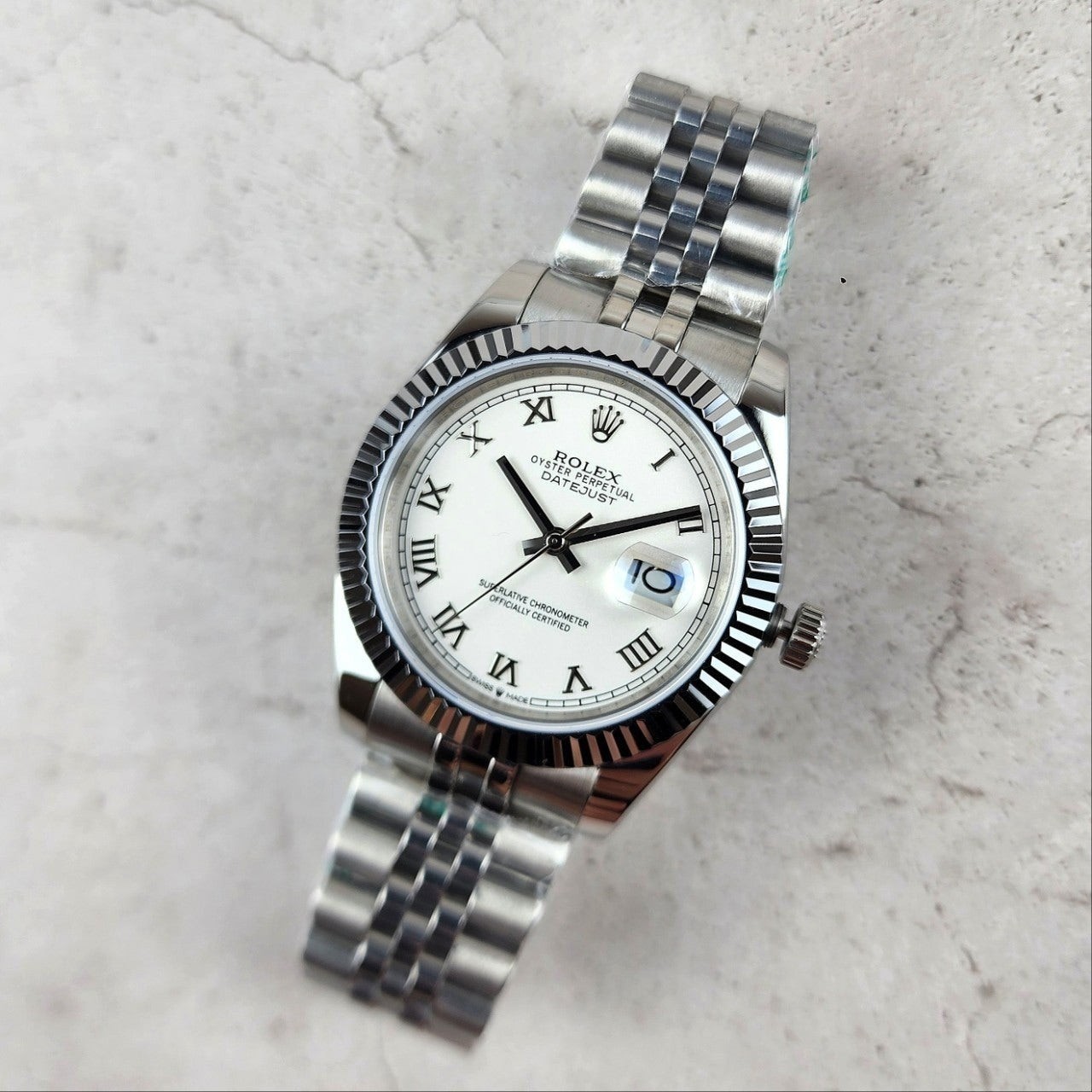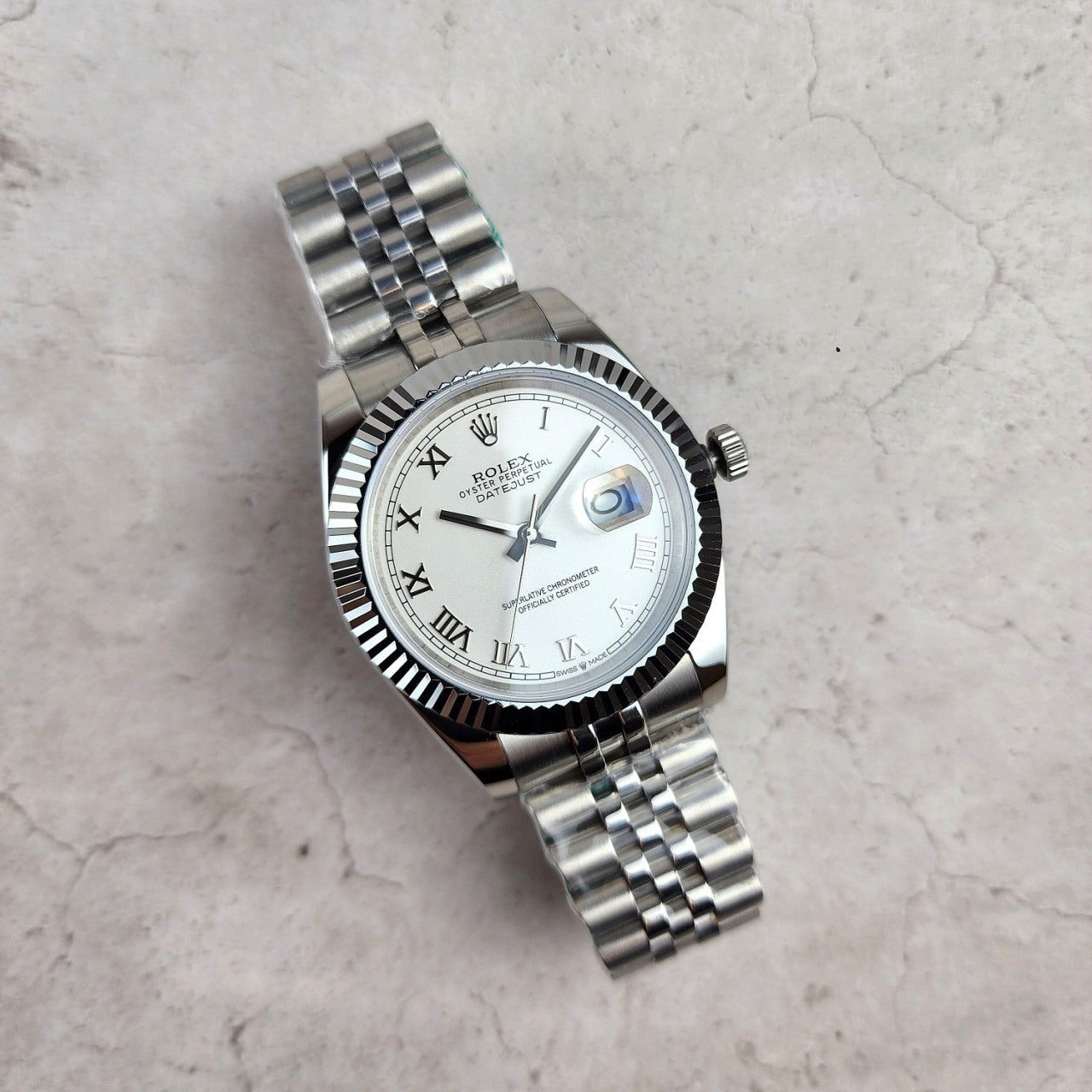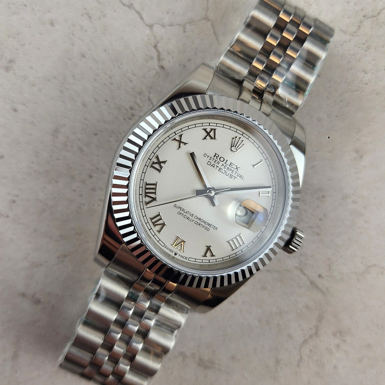 플루티드베젤에 쥬빌레줄을 줄여 일명 플루쥬빌 모델로 전국매장 품절 심지어 프리미엄 가격까지 형성되고 있는 시계입니다. 로마버젼에 화이트 다이얼이 매력적이면 41mm 크기로 남성용 예물시계 베스트 no.1 이라고 해도 과언이 아닙니다. 서브마리너가 너무 투박해서 싫으신분들에게 데이저스트 41mm 남성용 모델을 적극 추천드립니다.