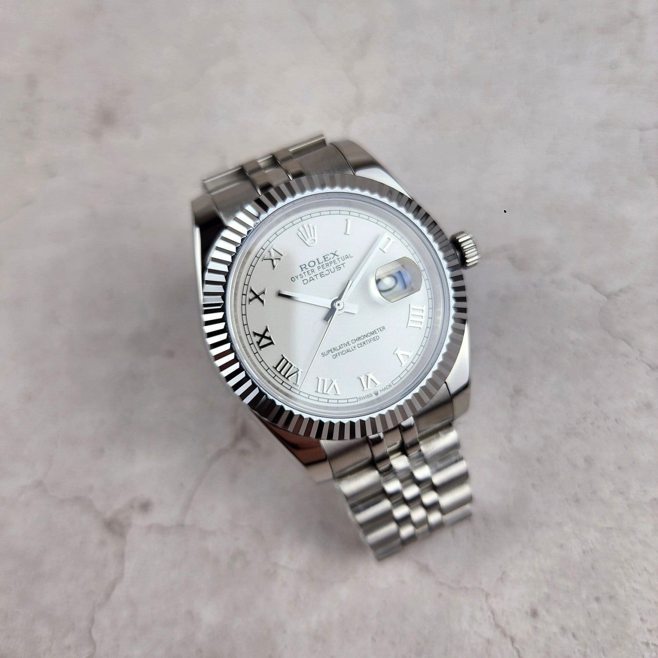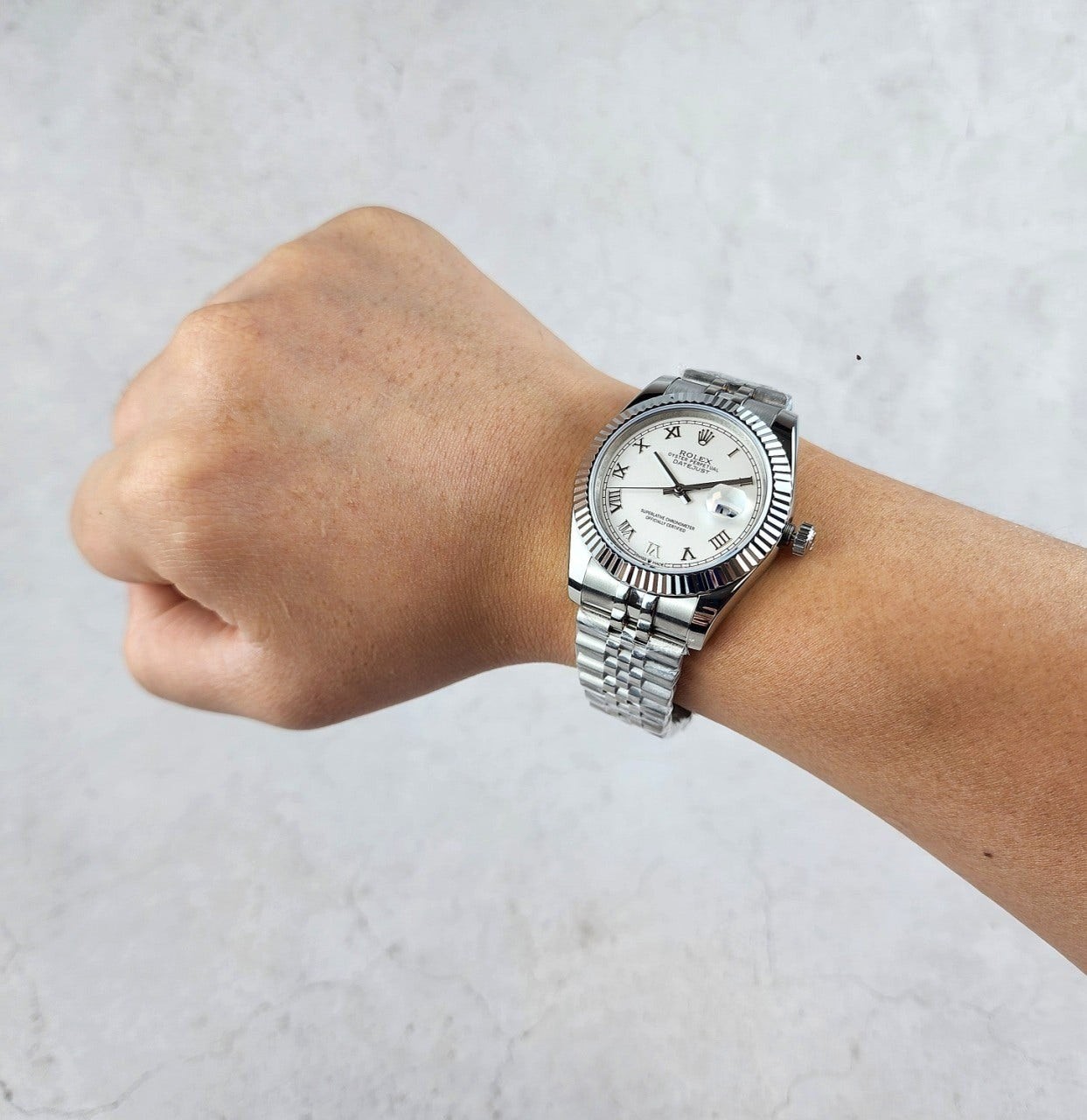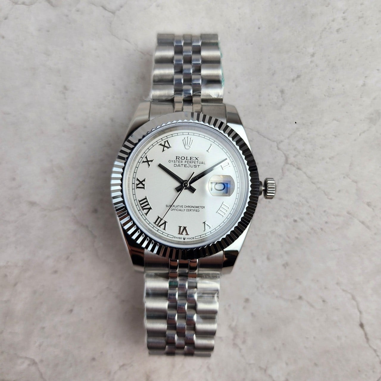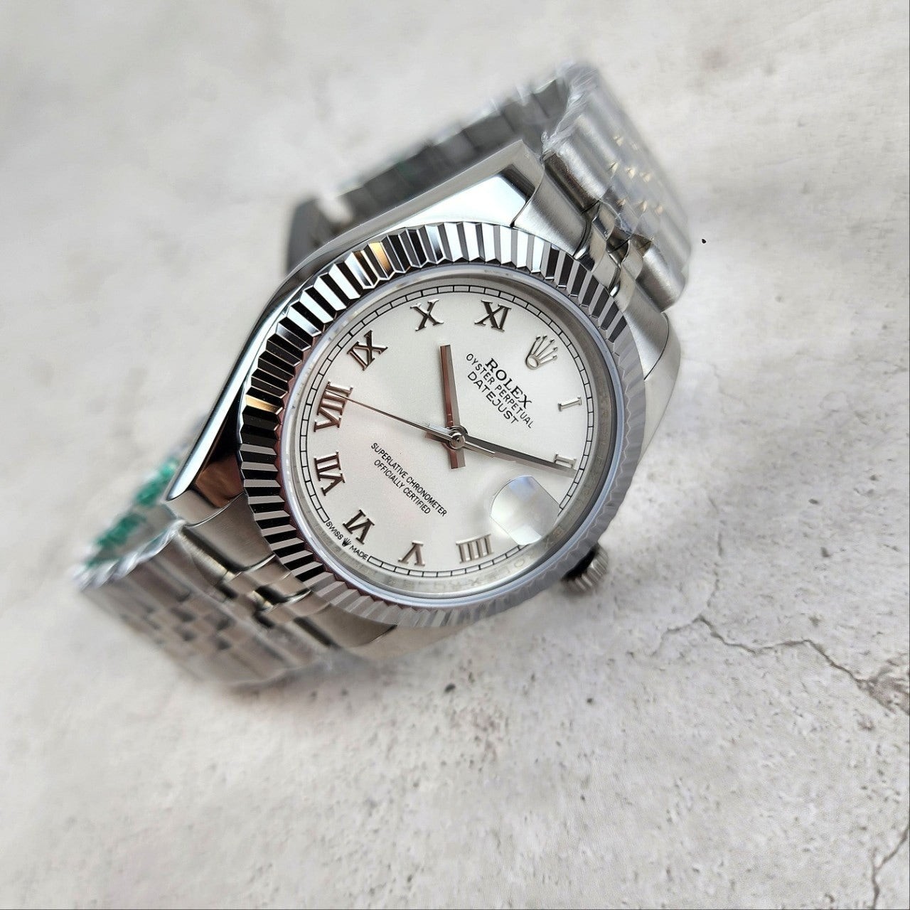 플루티드베젤에 쥬빌레줄을 줄여 일명 플루쥬빌 모델로 전국매장 품절 심지어 프리미엄 가격까지 형성되고 있는 시계입니다. 로마버젼에 화이트 다이얼이 매력적이면 41mm 크기로 남성용 예물시계 베스트 no.1 이라고 해도 과언이 아닙니다. 서브마리너가 너무 투박해서 싫으신분들에게 데이저스트 41mm 남성용 모델을 적극 추천드립니다.