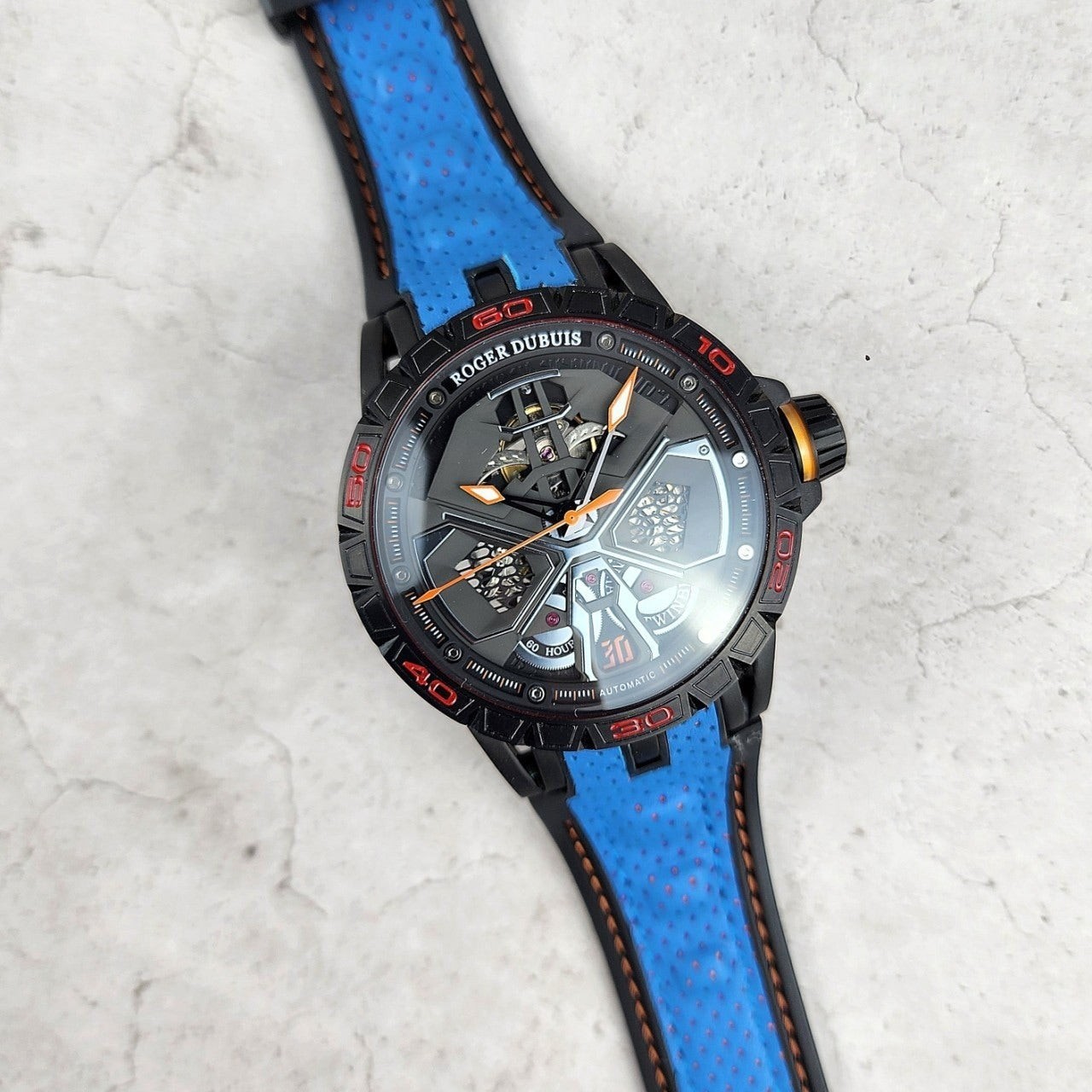 이번에 소개해드릴 시계는 로**뷔 엑스칼리버 우라칸 STO 리미티드에디션 모델입니다. 람보르기니의 일반 도로 주행용 슈퍼카 우라칸 STO에서 영감을 받은 시계입니다.