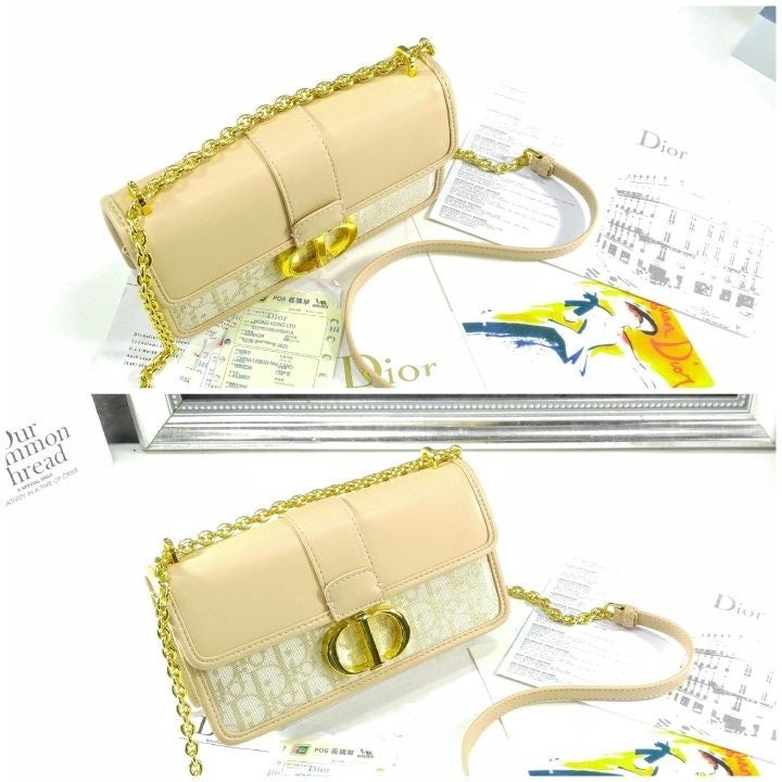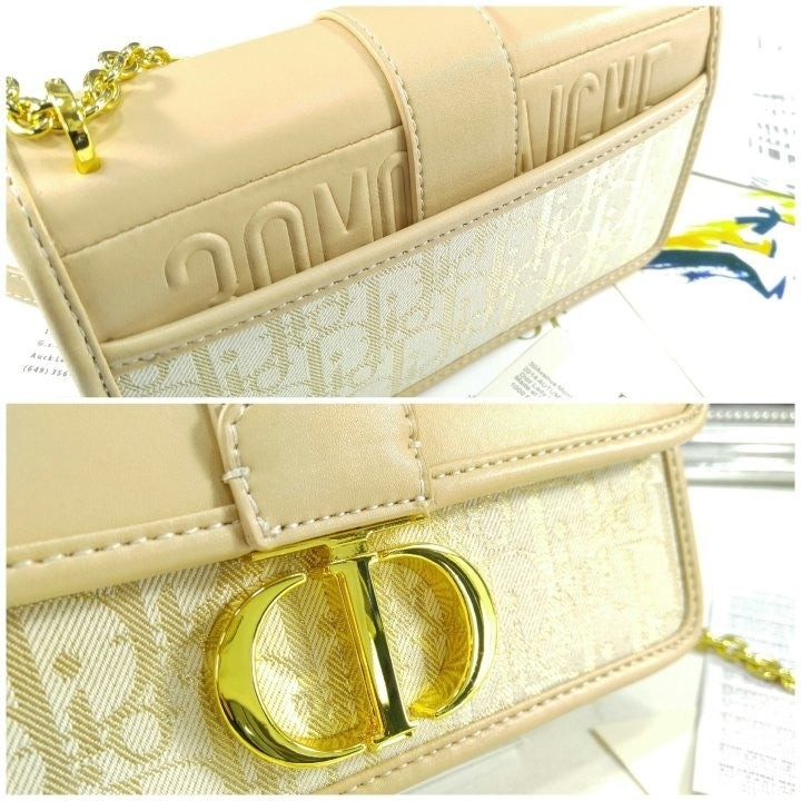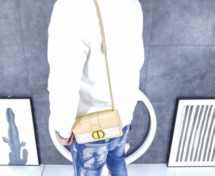 30 Montaigne 라인에서 내추럴 컬러 Di0r Oblique 자카드 소재의 우아한 타임리스 스타일로 선보이는 East-West 체인백입니다. Christian Di0r 향수 보틀의 씰에서 영감을 받은 앤틱 골드 피니시 메탈 CD 잠금장치가 톤온톤 스무스 송아지 가죽 소재 플랩을 장식합니다. 뒷면의 30 Montaigne 시그니처 엠보싱 등 다양한 디테일이 심플한 디자인의 완성도를 높입니다. 가죽 인서트를 더한 탈착식 체인 스트랩으로 구성되어 핸드백, 숄더백, 크로스백으로 편안하게 활용하기 좋습니다.