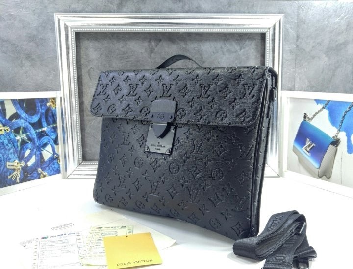 블랙 색상의 우아한 토뤼옹 모노그램 가죽 소재로 선보이는 세련된 S 락 브리프케이스. 유서 깊은 루* 트렁크 잠금장치를 연상시키는 자석형 클래스프부터 루* 시그니처를 입힌 조절형 숄더 스트랩까지 다양한 디테일이 특징. 전통적인 브리프케이스를 현대 비즈니스맨 특유의 세련된 룩에 어울리도록 재해석한 안전하고 실용적인 백.