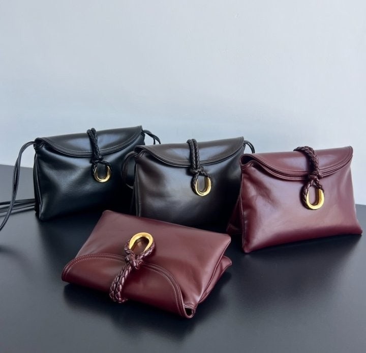 • 더블 플랩과 메탈 성분 및 위빙 코드로 구성된 잠금장치를 갖춘 부드러운 송아지가죽 소재의 스몰 크로스바디 백