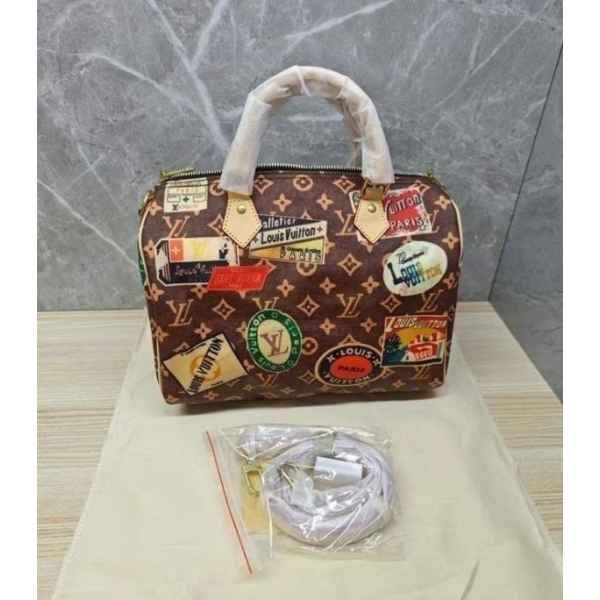 하우스 아카이브에 소장된 모노그램 캔버스 소재에서 영감을 받아 면 및 리넨 소재와 얇은 레진 코팅을 결합하여 선보이는 스피디 반둘리에 30 핸드백. 호텔 라벨로 이루어진 패치워크를 장식하여 가스통 루*의 전설적인 컬렉션에 오마주를 바치며 시대를 초월하는 매력을 선사하는 아이템. 우아한 헤리티지 감성을 더하는 메종 고유의 천연 카우하이드 가죽 소재 트리밍.