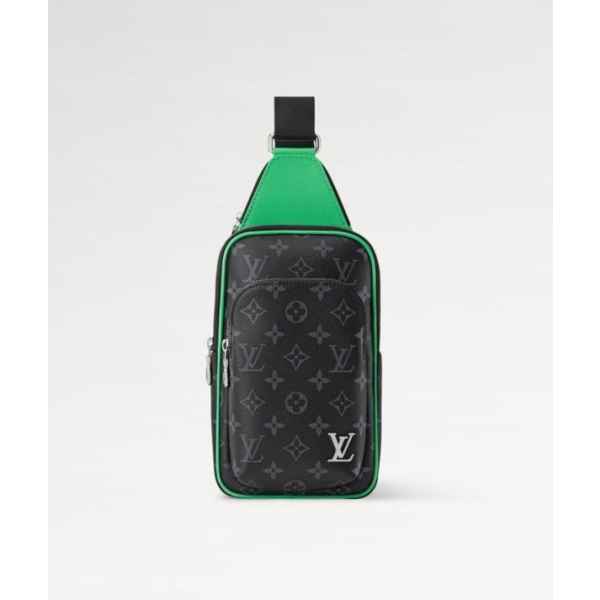 모노그램 이클립스 캔버스 소재의 에비뉴 슬링백 PM 크로스바디 백. 대담하고 산뜻한 감각을 더하는 색상을 입힌 가죽 트리밍과 파이핑 디테일. 루테늄 색조의 지퍼가 달린 세 개의 지퍼형 포켓과 주요 수납칸, 넓은 앞면 포켓, 작은 삼각 포켓을 갖춘 아이템.
