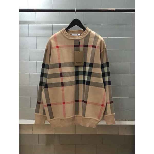 클래식한 분위기의 버** 체크 울 니트입니다.