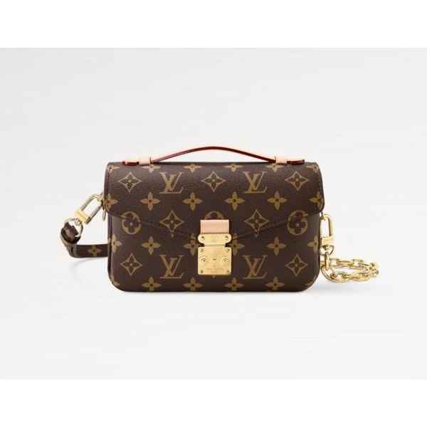 모노그램 캔버스와 천연 카우하이드 가죽 트리밍 및 S락 시그니처가 조화를 이루는 포쉐트 메티스 이스트 웨스트 백. 짧은 숄더 백 스타일로 트렌디하게 연출할 수 있는 골드 색상의 체인과 같은 새롭고 현대적인 디테일과 하우스의 상징적인 요소가 어우러진 디자인. 스마트폰을 보관할 수 있는 넉넉한 크기. 세 개의 내부 수납공간과 내부 및 외부의 지퍼형 포켓을 갖춘 아이템.