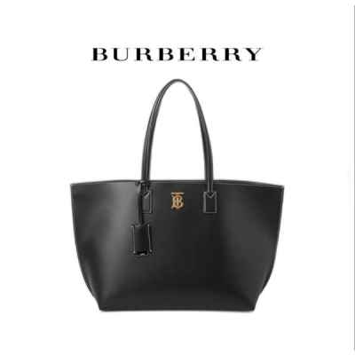 버** 블랙 '모노그램 미디엄' 쇼퍼백. 송아지 가죽으로 제작되었으며, 랍스터 클래스프 잠금장치로 고정됩니다.