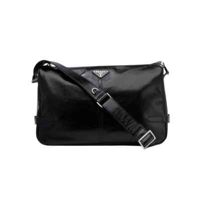 광택 마감의 부드러운 가죽으로 제작된 모던하고 활용도 높은 숄더백은 세련된 디자인과 고급스러운 디테일이 돋보이며 특별한 트라이앵글 로고로 장식되어 있습니다.