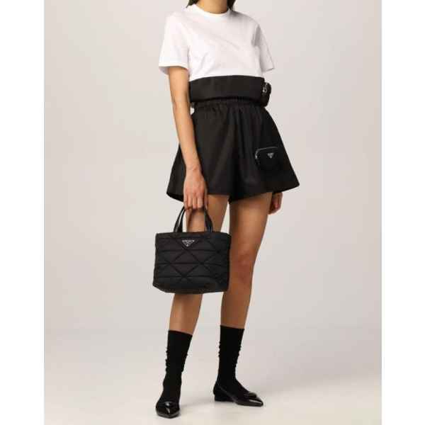 프** 고급 리나일론 나파 트라이앵글 퀼팅 패딩 더블핸들 지퍼 포켓 토트 블랙 요약정보 및 구매