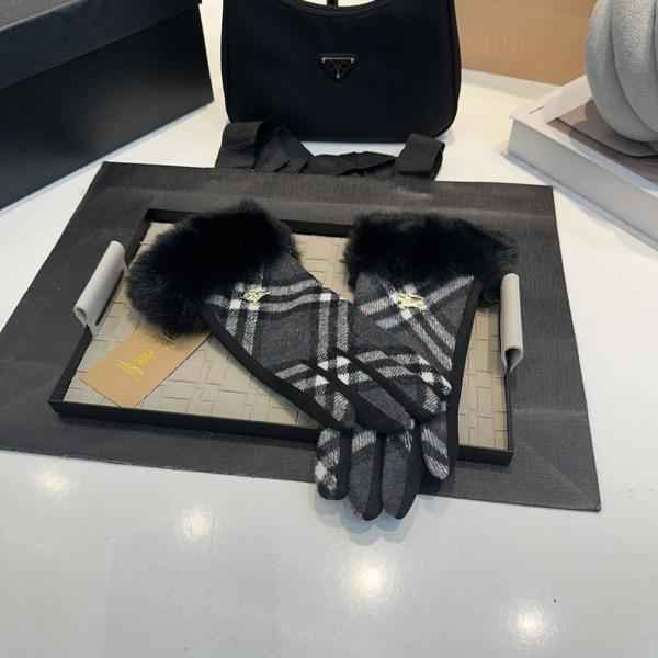 • 버** 라쿤 체크 패턴 로고 장갑