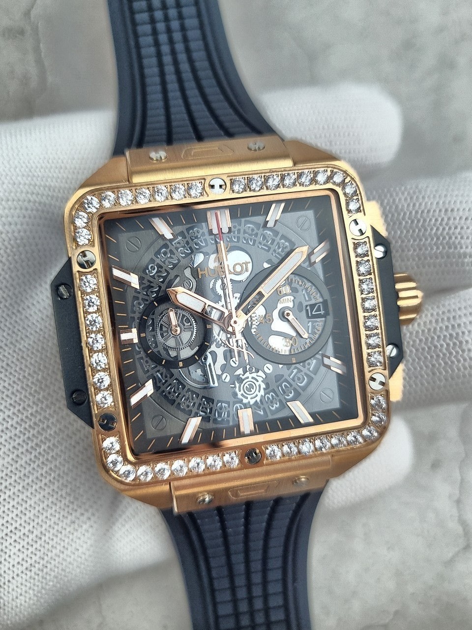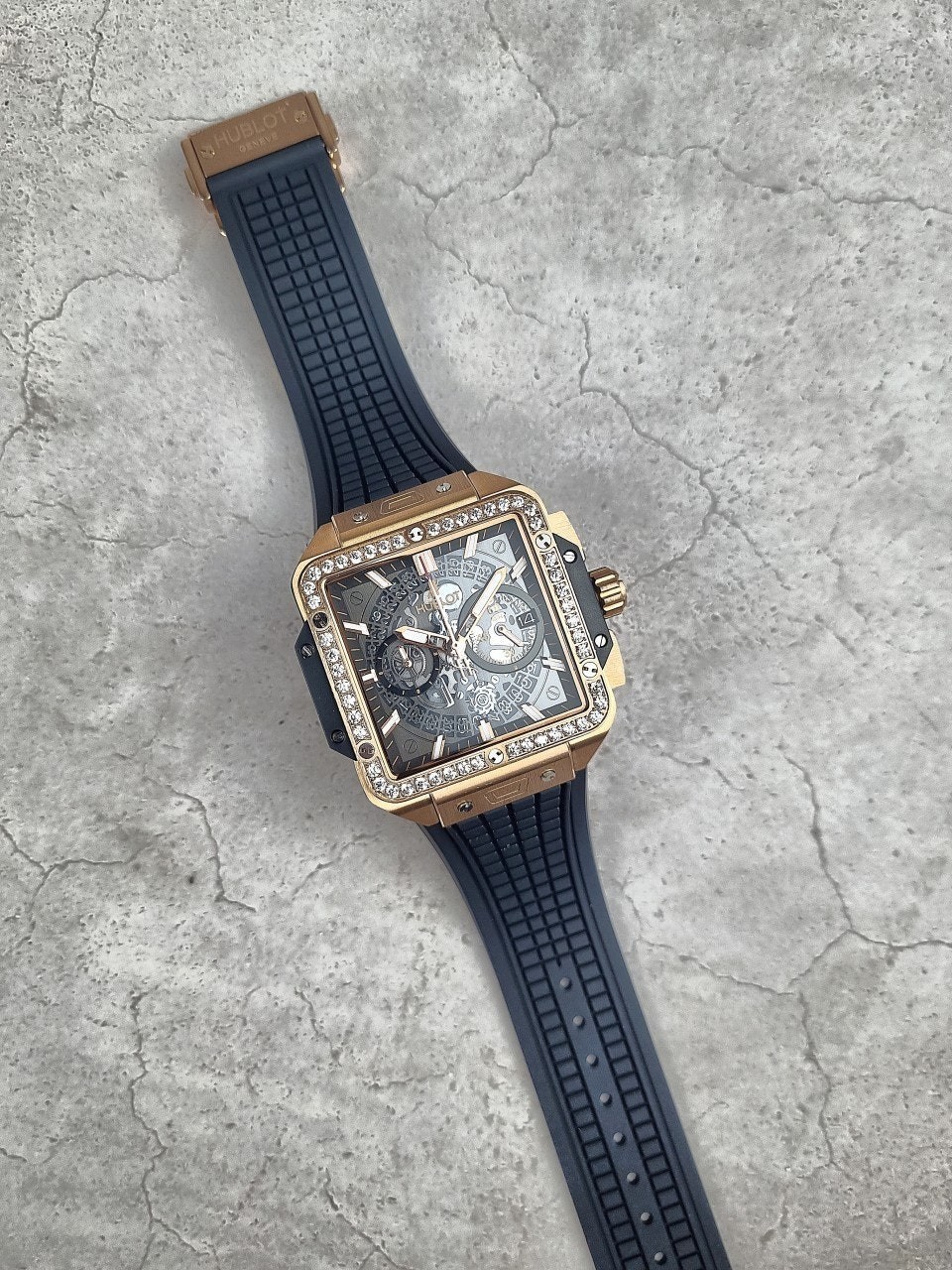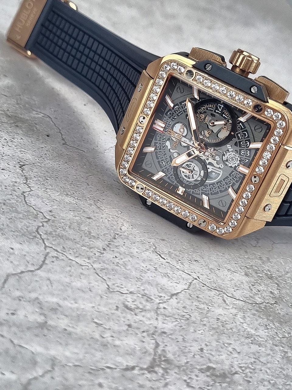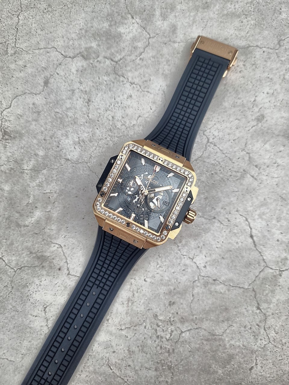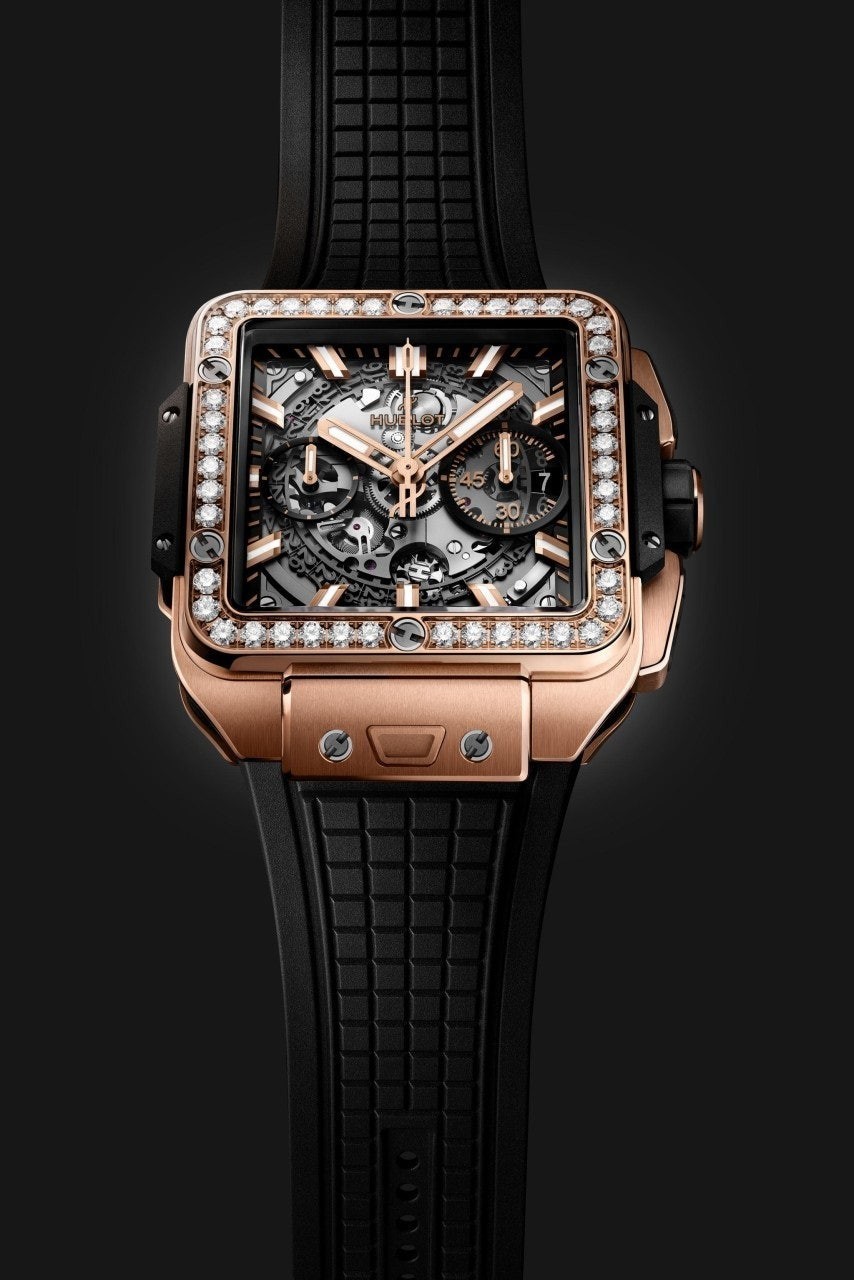 이번에 소개해드릴 시계는 위** 스퀘어뱅 티타늄 블랙골드 다이아몬드 에디션입니다. 위**가 디자인한 최초의 스퀘어 워치이자, 라운드와 배럴 형태 이후 워치메이커에게 남겨진 유일한 기하학적 형태인 스퀘어로 디자인된 스퀘어 뱅 유니코의 독특하고도 다양한 개성을 드러냅니다. 스퀘어는 이제 새로운 기하학적 형태를 의미합니다. 과하지 않는 다이아몬드 세팅으로 영롱함을 더 극대화시키는 모델중 하나입니다.
