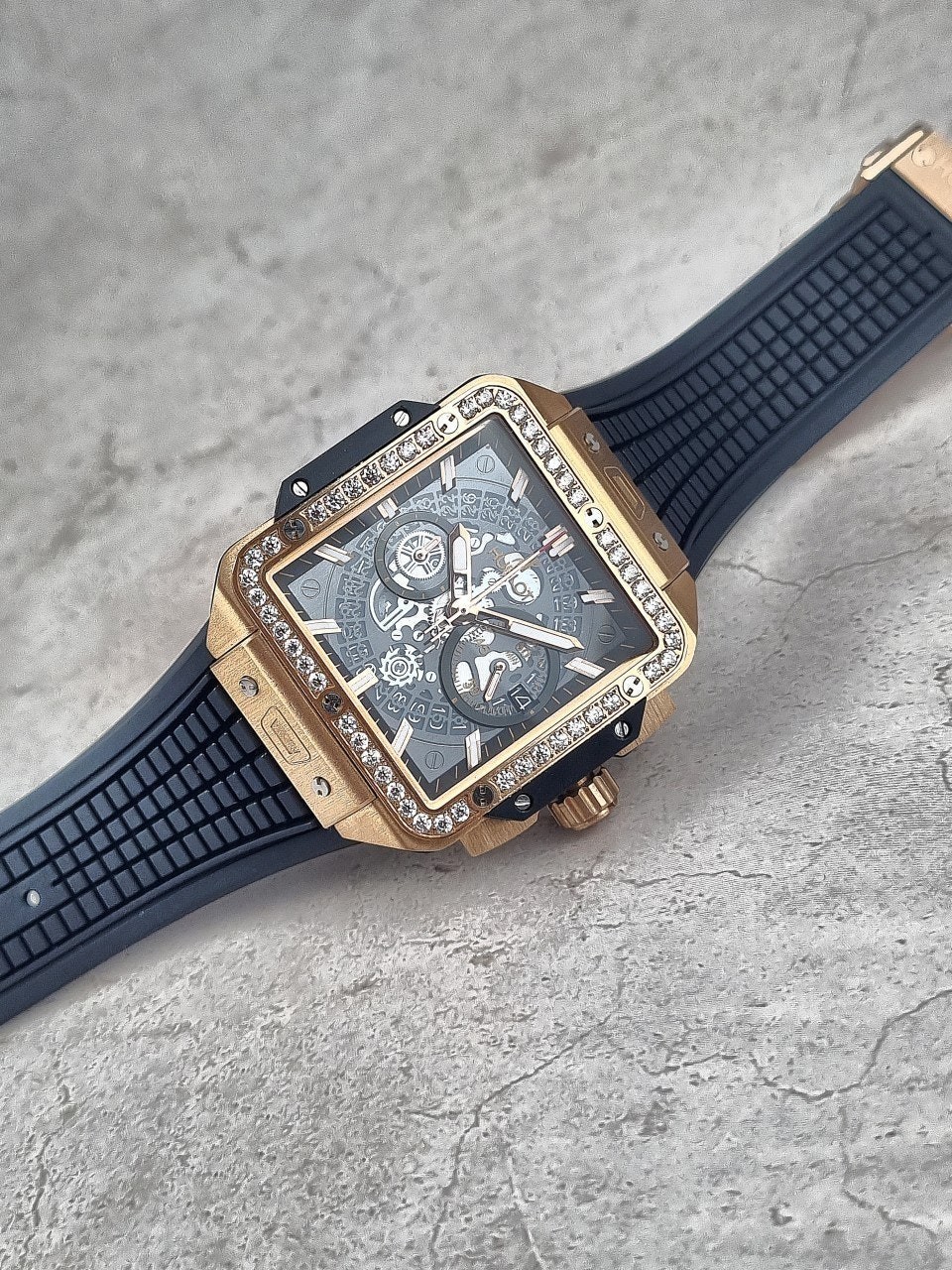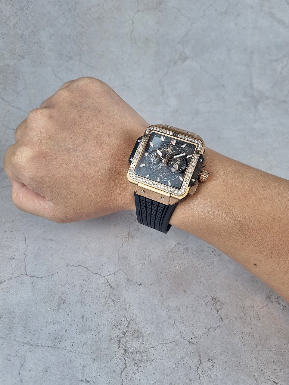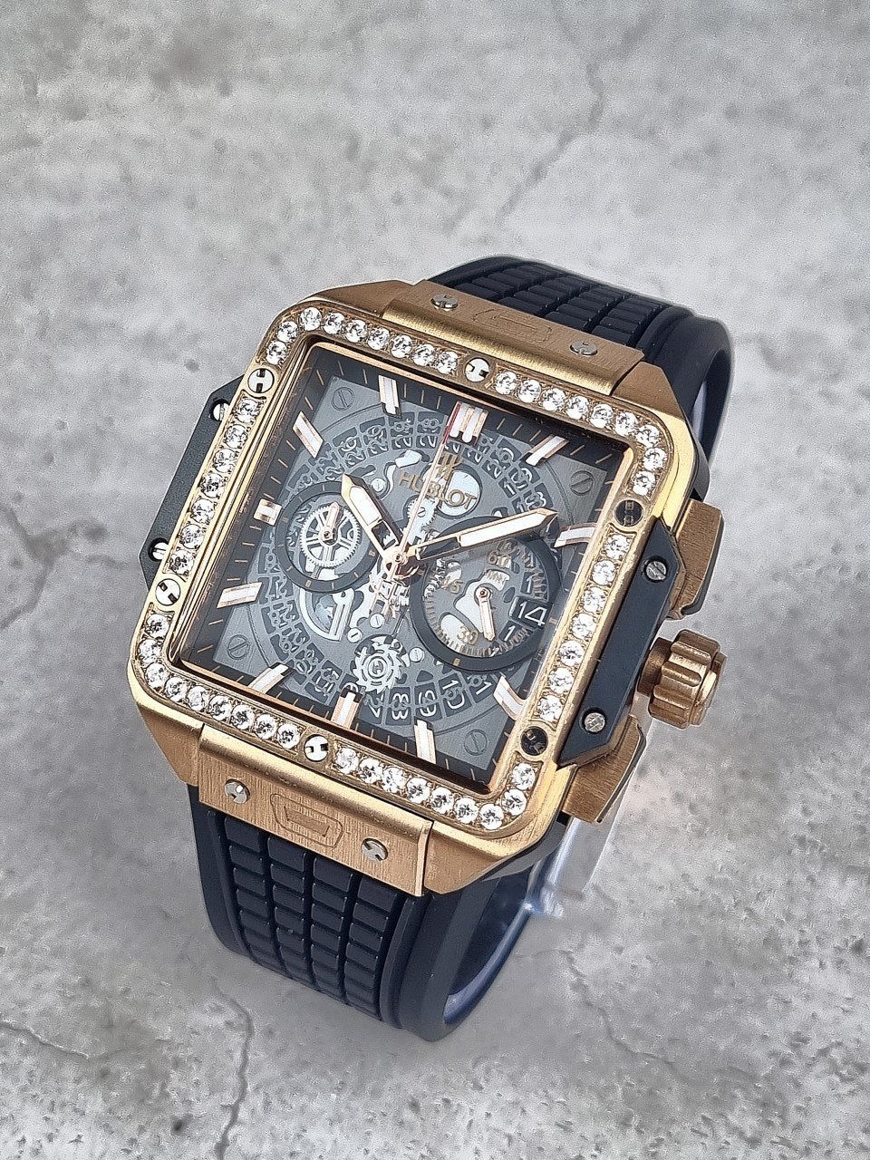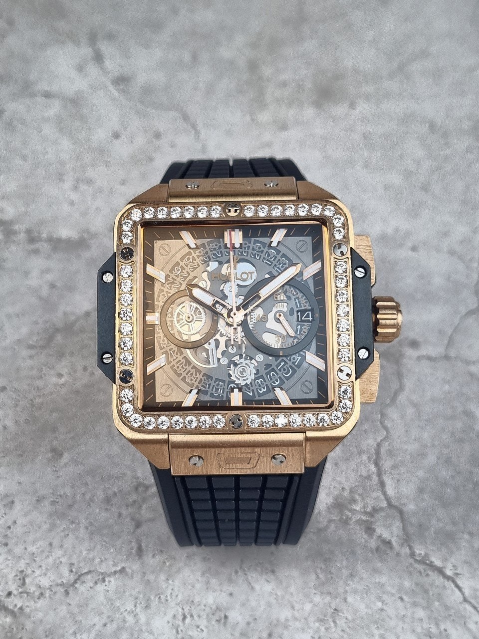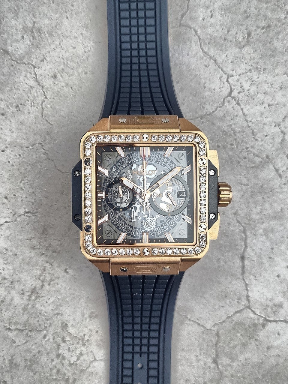 이번에 소개해드릴 시계는 위** 스퀘어뱅 티타늄 블랙골드 다이아몬드 에디션입니다. 위**가 디자인한 최초의 스퀘어 워치이자, 라운드와 배럴 형태 이후 워치메이커에게 남겨진 유일한 기하학적 형태인 스퀘어로 디자인된 스퀘어 뱅 유니코의 독특하고도 다양한 개성을 드러냅니다. 스퀘어는 이제 새로운 기하학적 형태를 의미합니다. 과하지 않는 다이아몬드 세팅으로 영롱함을 더 극대화시키는 모델중 하나입니다.