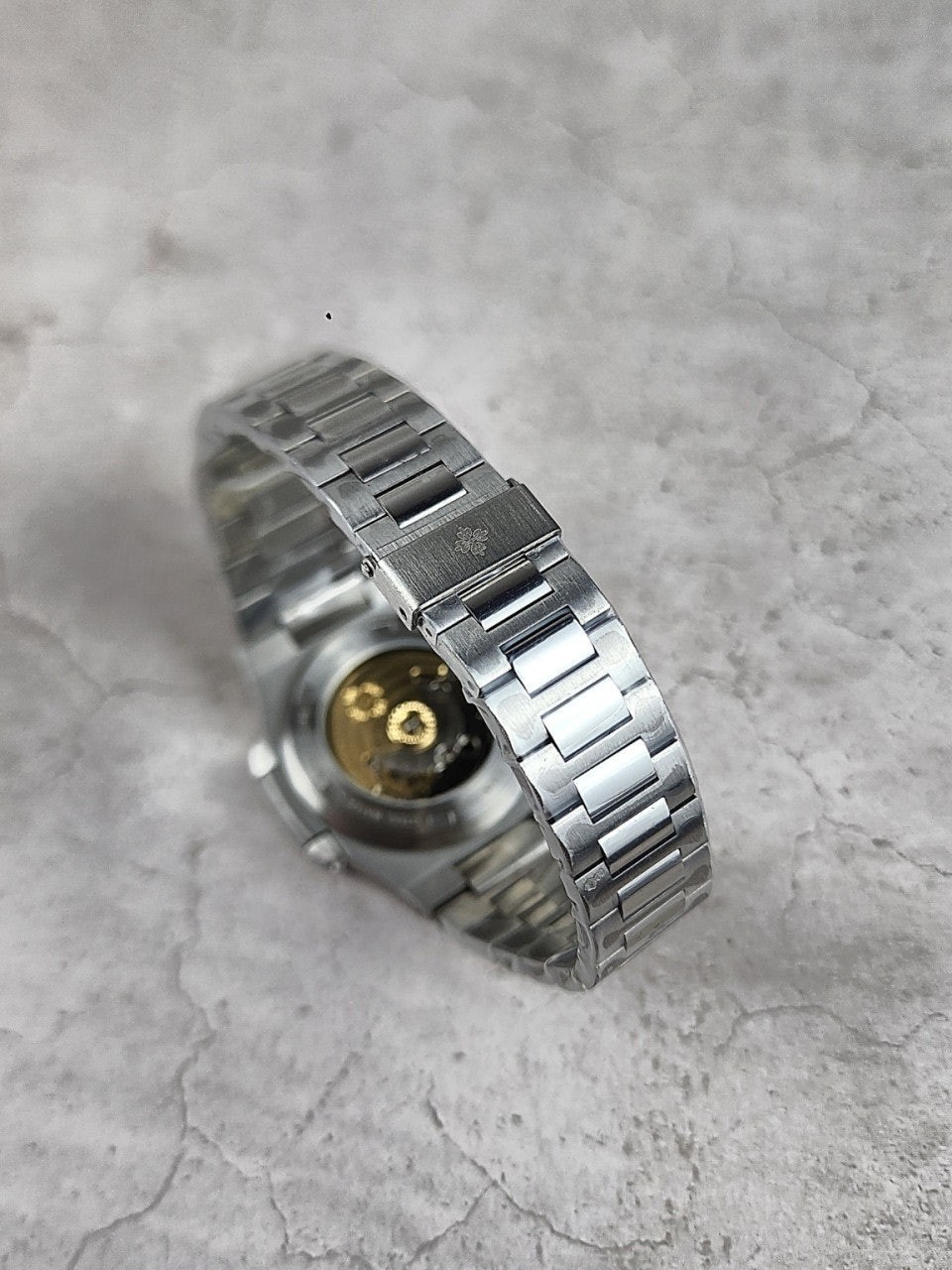 1976년에 처음 출시된 력셔리 스포츠 워치의 대명사로, 세련된 디자인과 고품질의 무브먼트로 많은 시계 애호가들의 사랑을 받고있는 시계입니다. 현재는 시중에서 구하기 매우 어려운 모델중 하나이며, 청판다이얼은 빛의 각도에 따라 다양한 색상을 표현하며, 고급스러원 분위기를 연출하고있습니다.