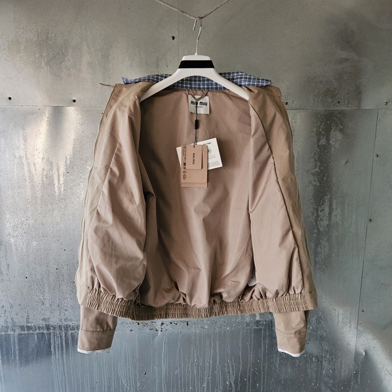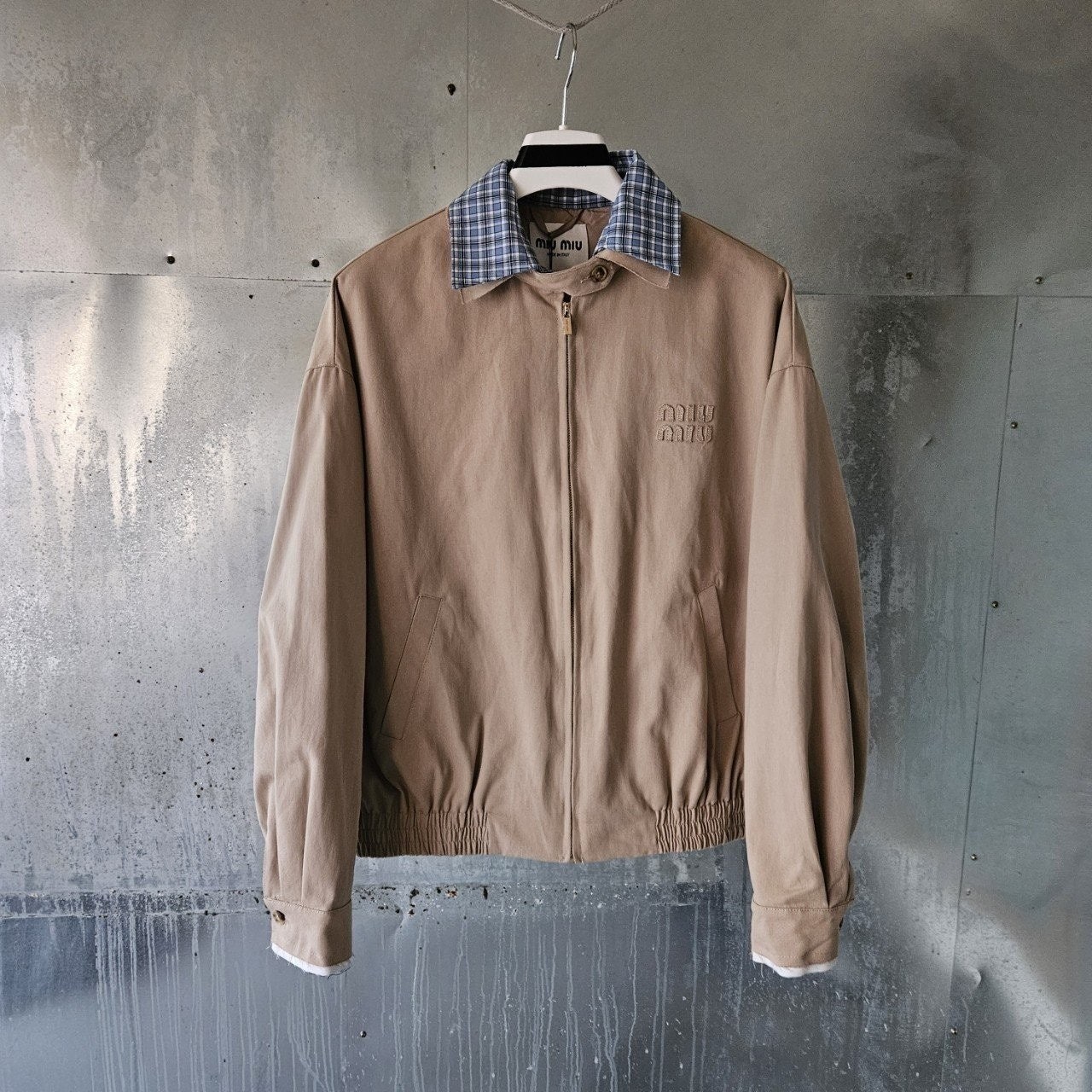 본 제품은 "미*** 치노 블루종 자켓 으로써 정규품 동일원단을 사용해 미우전문제작 공장에 오더를넣어 제작한 완벽한 상품입니다. 고급스러운 무드와 핏으로 편안하게 입으실 수 있으며 국내에서 흉내조차 내기 힘든 디테일이며 퀄리티 자부합니다.