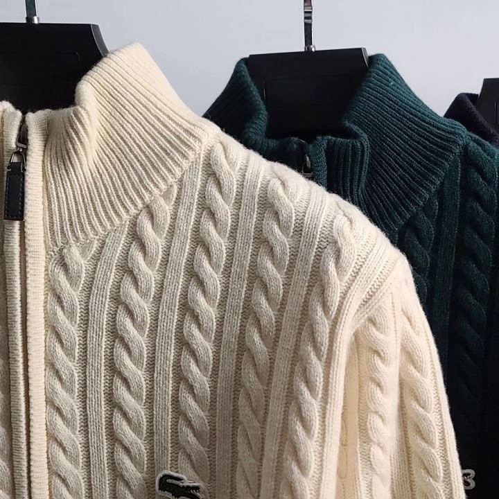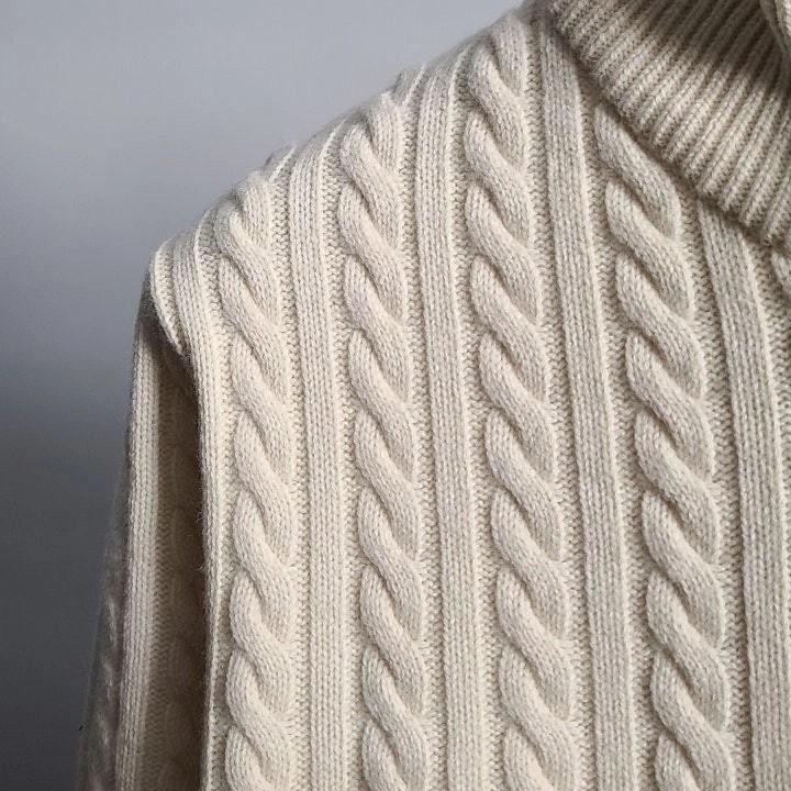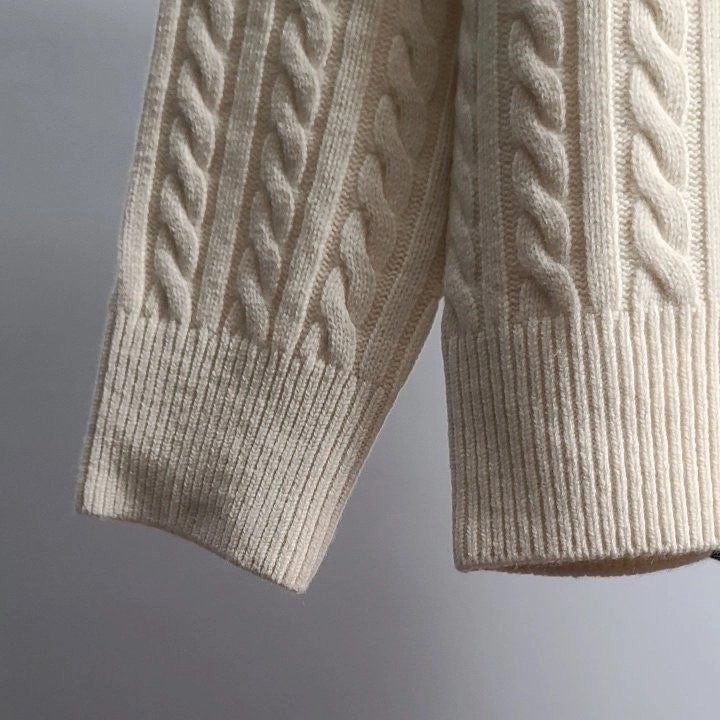 골지와 케이블 짜임이 교차하는 편직기법과 베이직한 컬러로 클래식한 무드가 느껴지며 원단 컬러에 어울리는 소매 배색으로 포인트를주어 클래식함이 물씬 묻어 나오는 제품입니다.