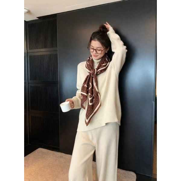 자카드 패턴이 가득 들어가있고 써클 모양으로 일정한 패턴을 주며 귀여움과 고급스러움을 표현한 스카프