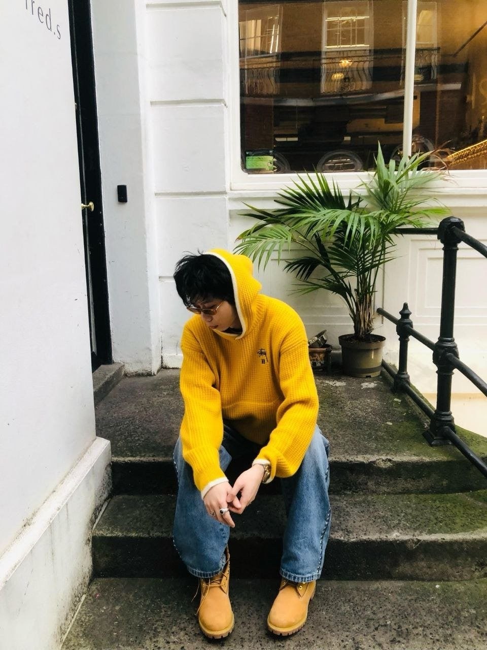 • 스** x 웨일즈 보너 캐시미어 와플 후드 스웨터  수입
