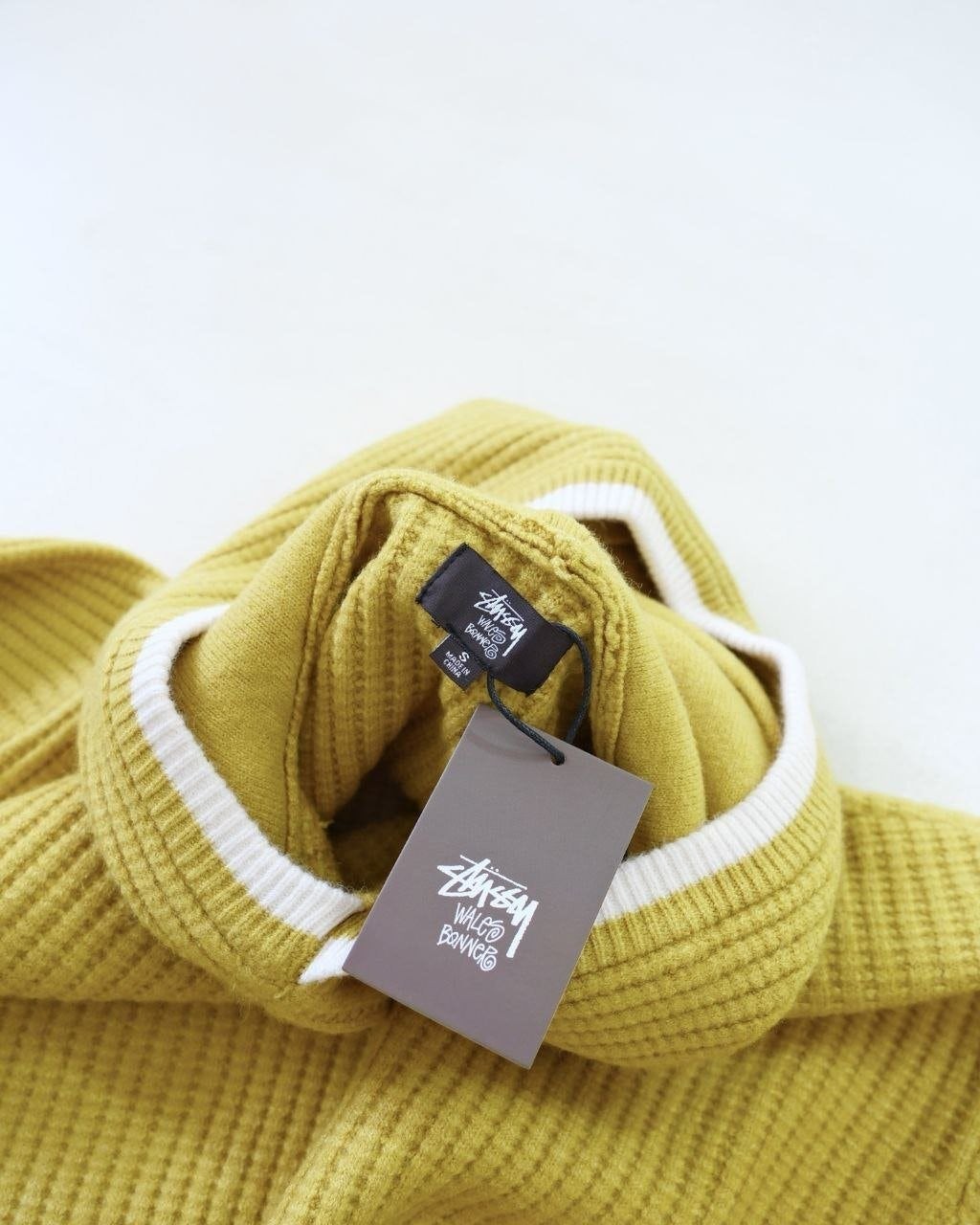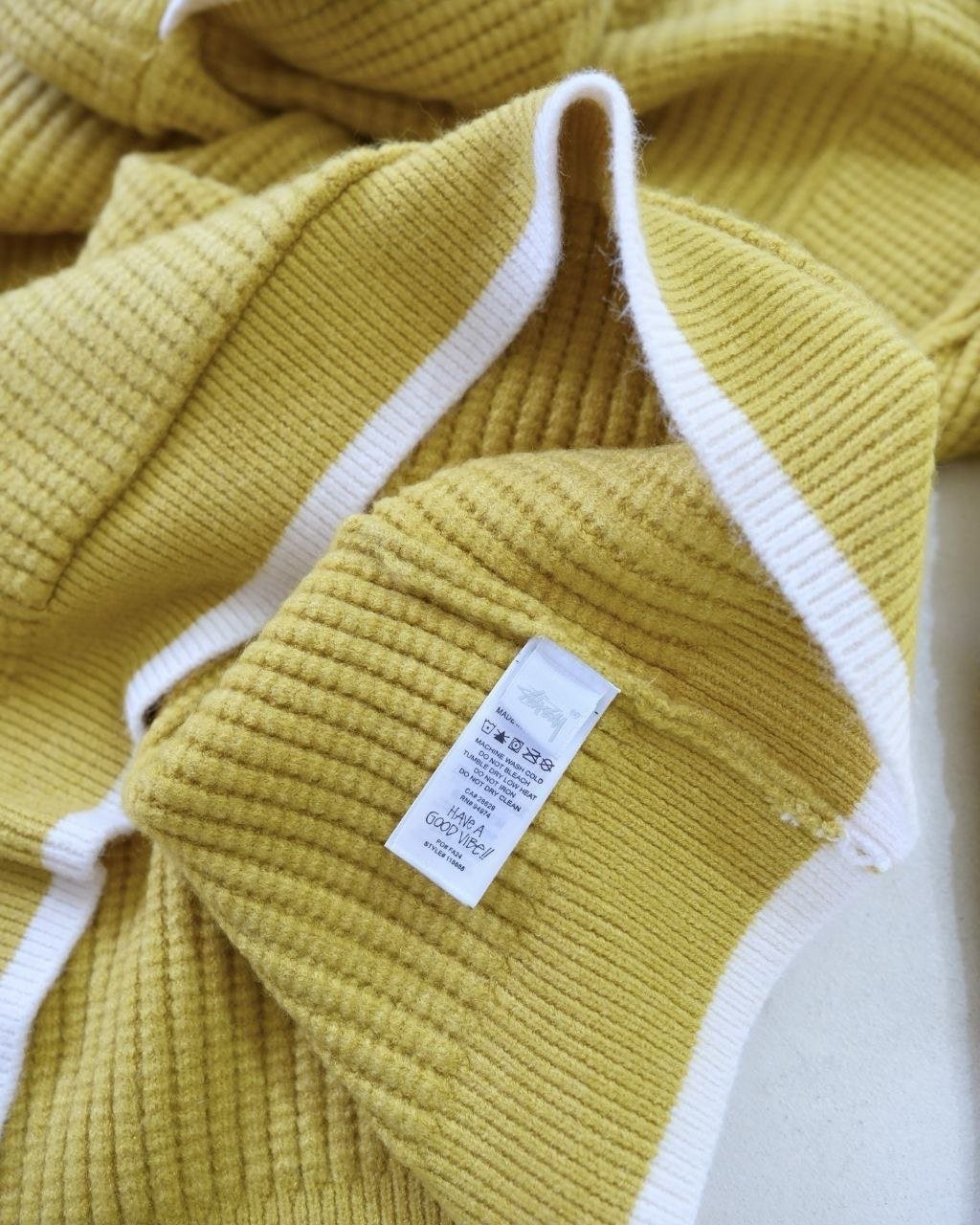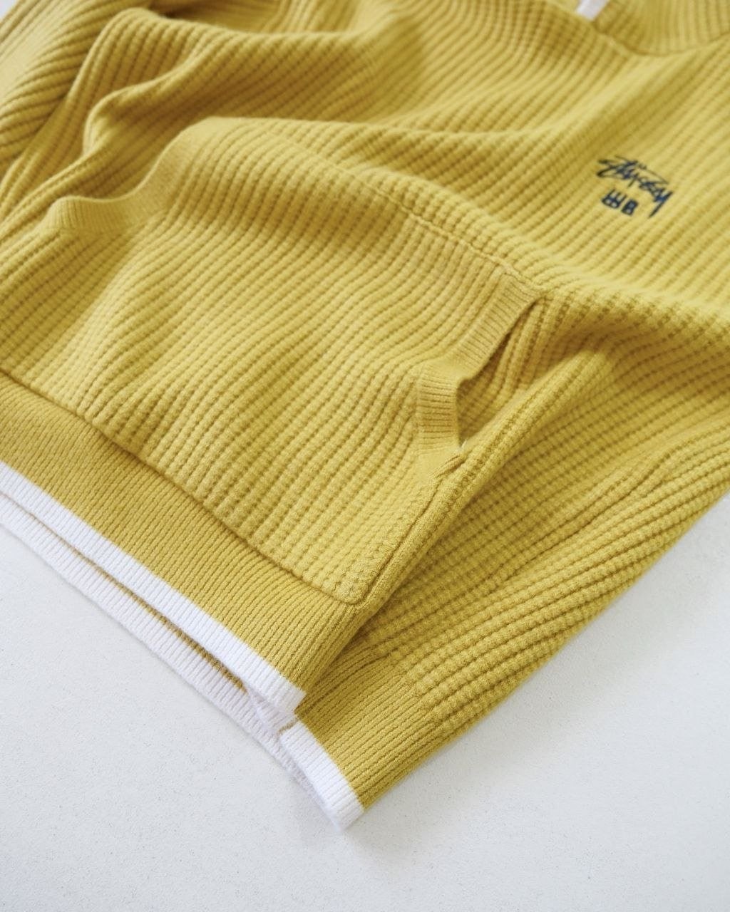 •Stus**(스투*)와 Wales Bonner(웨일즈 보너)의 FW25 컬래버레이션 캐시미어 후디 스타일 로고 니트로, 로고가 포인트인 편안한 후드형 와플 조직 니트입니다. 맞춤 제작한 면 혼방 니트 원단을 사용해 한 벌당 무게가 무려 1,000g에 달하는 중량감 있는 제품이며, 오리지널 편직 방식 그대로 재현해 촉감이 부드럽고 까칠하지 않아 민감한 피부에도 부담이 없습니다. 전체적으로 여유 있는 루즈 실루엣으로 성별에 구애받지 않고 멋스럽게 착용할 수 있게 정교하게 패턴이 재단되어 있습니다. 공식 홈페이지와 동일한 맞춤 부자재(세탁 라벨·넥라벨·행택 등)까지 모두 재현해 1:1 제품 입니다.