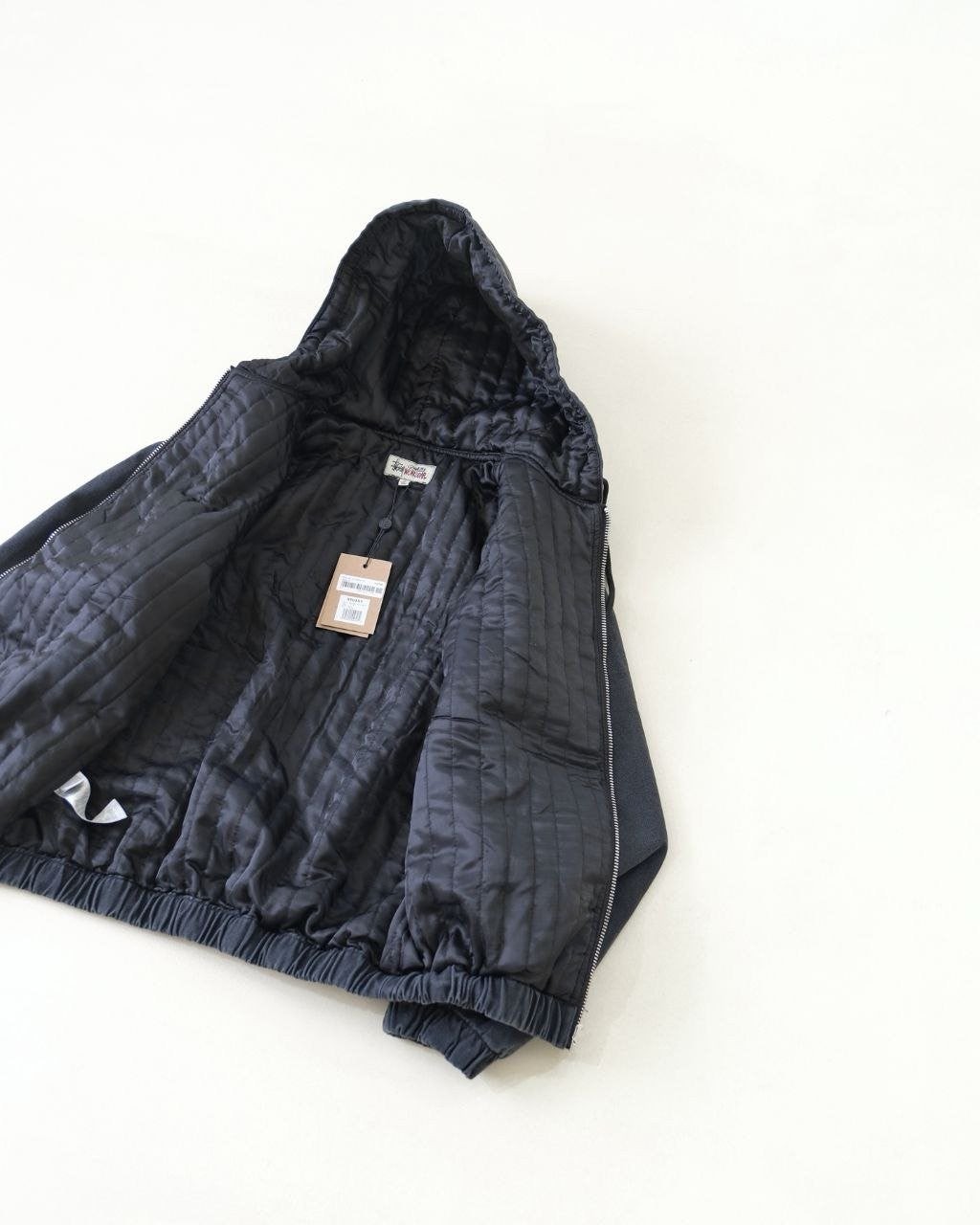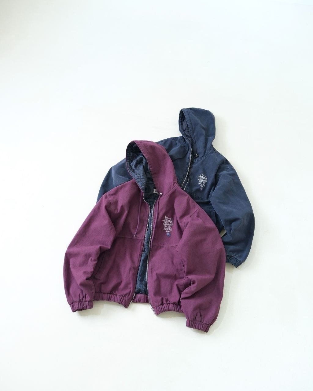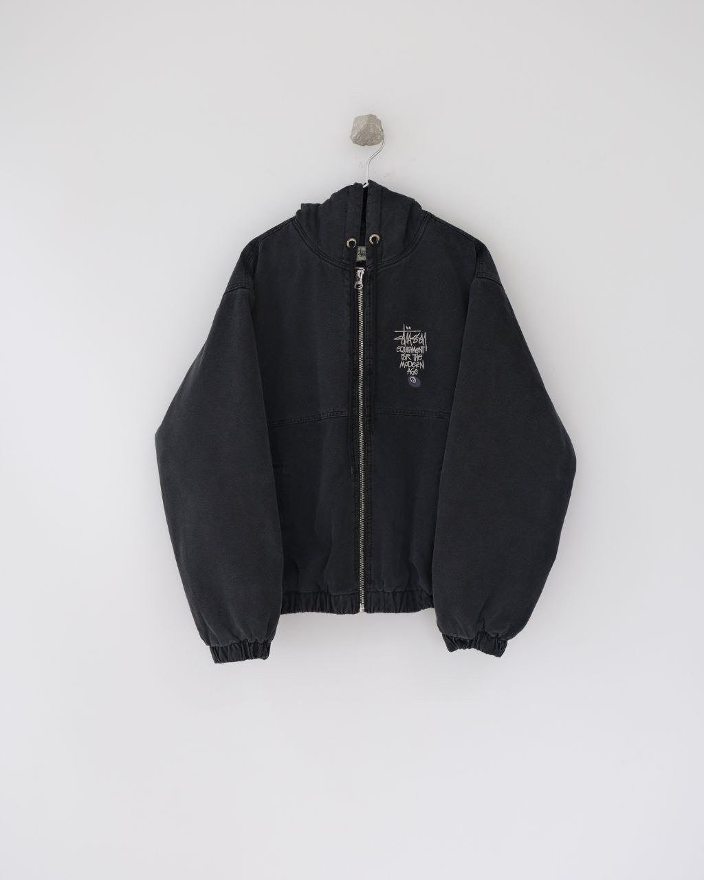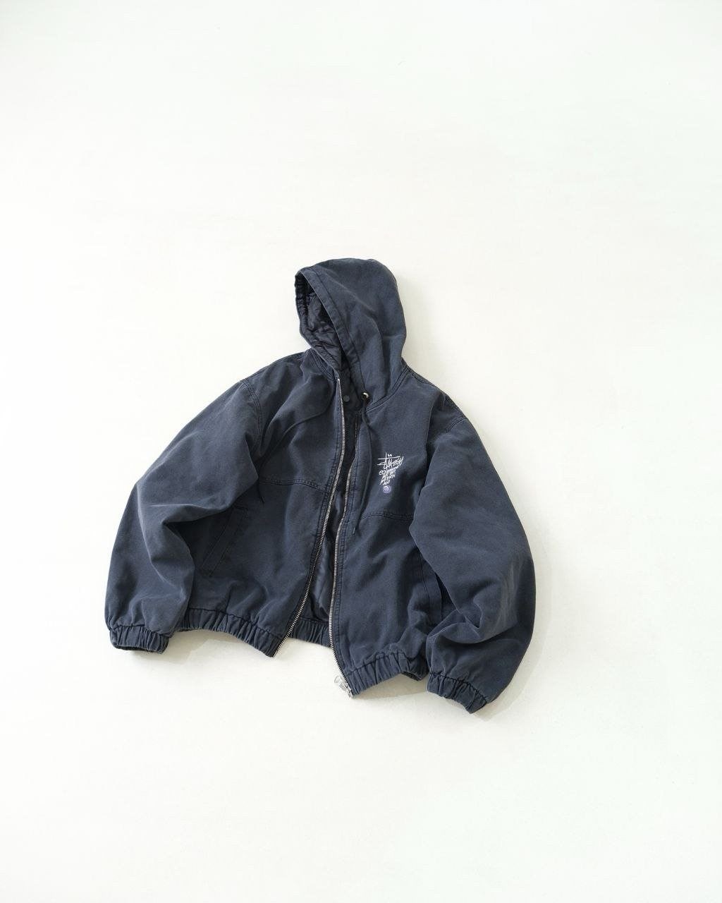 •아메리칸 빈티지 무드를 완성하는 최적의 선택입니다. 겉감은 면 100%, 안감은 폴리에스터 100%이며, 140g급 실크솜 충전재를 사용해 보온성을 확보했습니다. YKK 메탈 지퍼를 적용했고, 소매와 밑단은 신축성 있는 립으로 마감했습니다. 왼쪽 가슴에는 Stus** 레터링과 8볼 그래픽 자수가 들어가며, 오리지널을 기반으로 1:1 패턴 개발을 진행해 모든 부자재를 맞춰 구현했습니다.