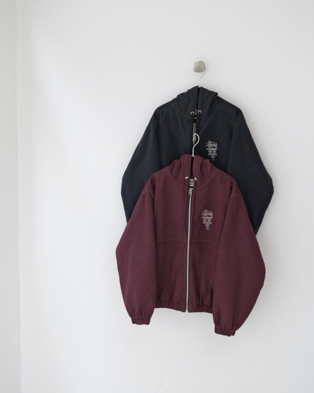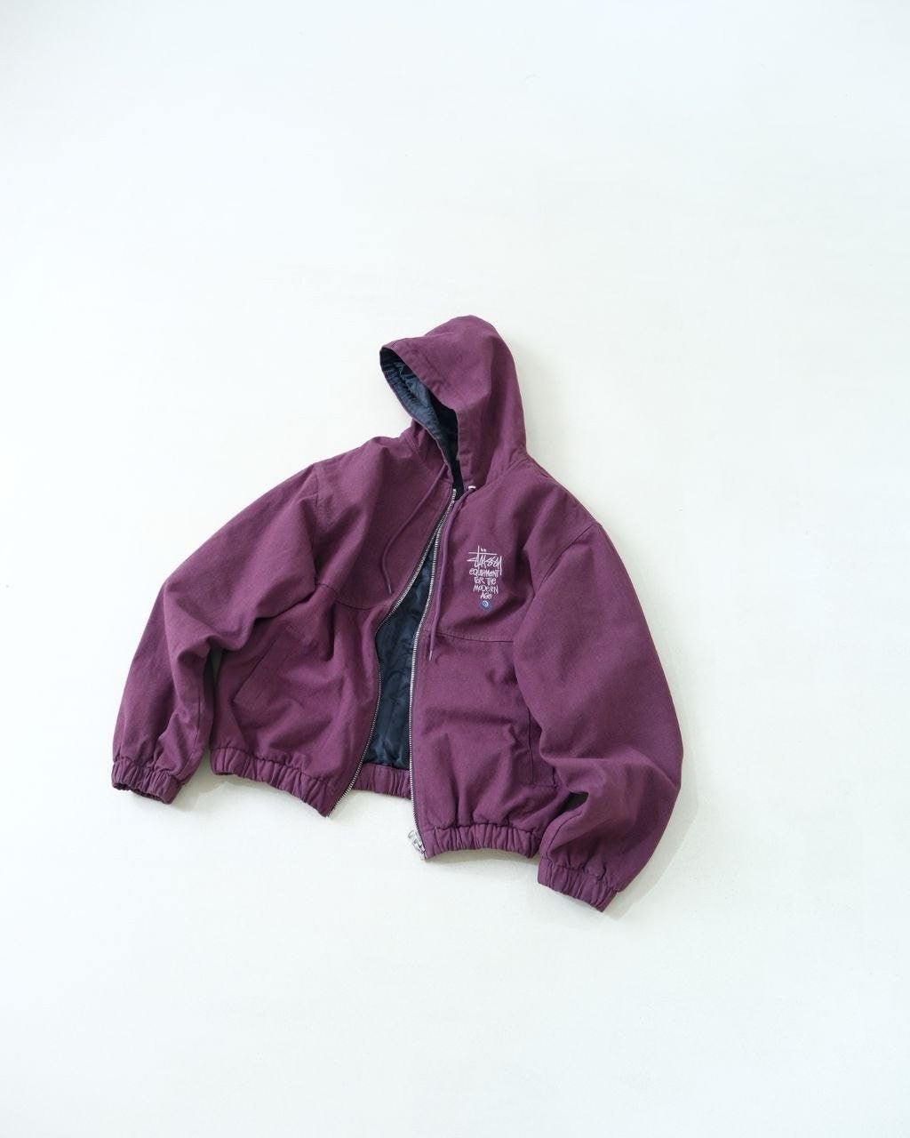•아메리칸 빈티지 무드를 완성하는 최적의 선택입니다. 겉감은 면 100%, 안감은 폴리에스터 100%이며, 140g급 실크솜 충전재를 사용해 보온성을 확보했습니다. YKK 메탈 지퍼를 적용했고, 소매와 밑단은 신축성 있는 립으로 마감했습니다. 왼쪽 가슴에는 Stus** 레터링과 8볼 그래픽 자수가 들어가며, 오리지널을 기반으로 1:1 패턴 개발을 진행해 모든 부자재를 맞춰 구현했습니다.