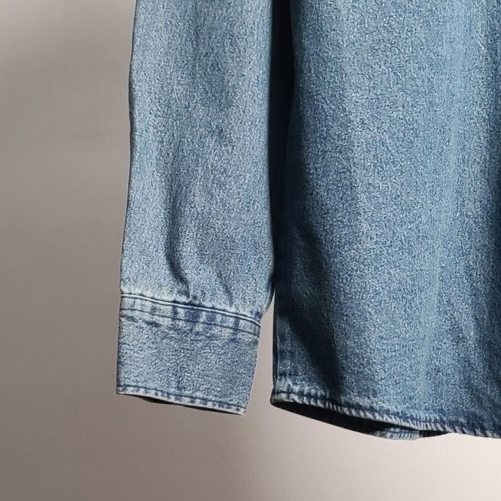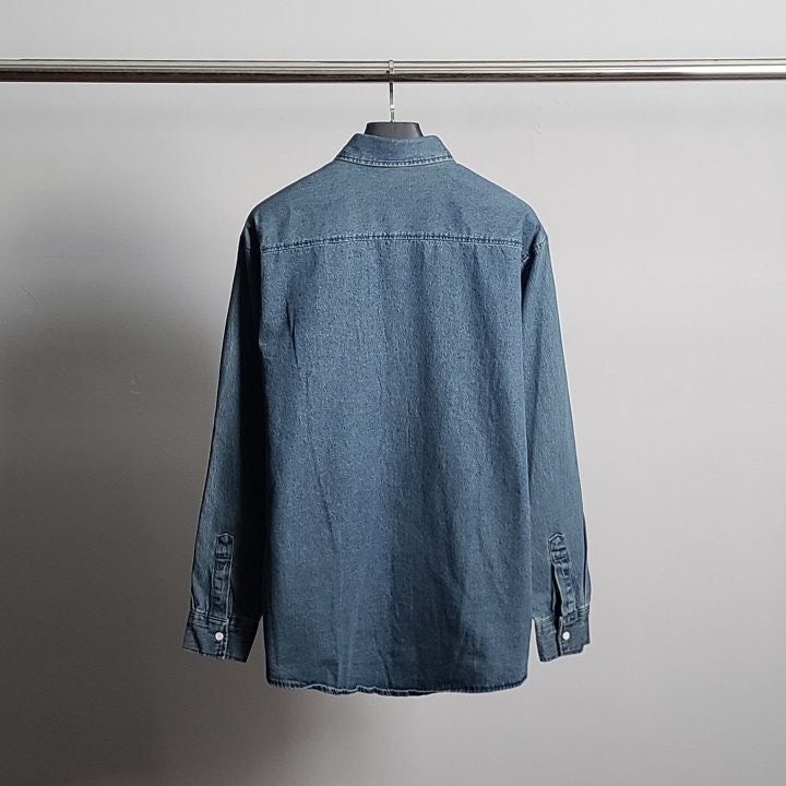 워싱은 바이오탈색후 틴을올려 빈티지느낌을강조하고 워싱대신 데님처리를하여 손상이 덜가기때문에 불량처리를 최소화하엿습니다